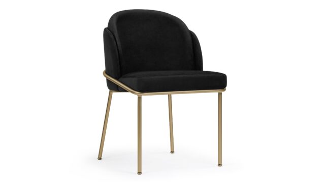 Aben Dining Chair, Black Plush Velvet and Brushed Brass