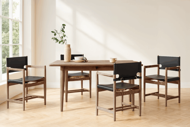 Aksel Side Chair, Deep Black Vegan Leather and Walnut Stain
