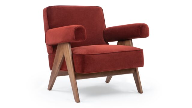 Pierre Jeanneret Lounge Chair, Burgundy Silken Velvet