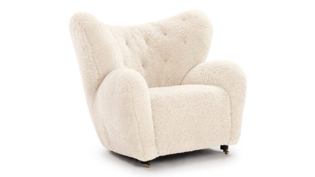 Cabana Chair, White Long Hair Sherpa and Walnut