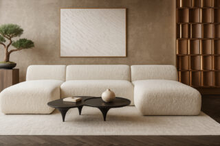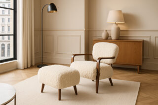 Cabana Ottoman, Almond Long Hair Sherpa and Walnut