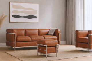 Corbusier Grand Modele Ottoman, Tan Premium Leather