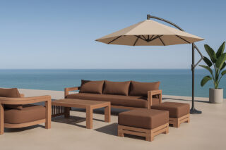 Lusso Outdoor Ottoman, Natural Teak with Mocha Cushion