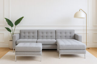 Papa Bear Ottoman, Light Gray Wool and Walnut
