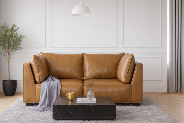 Elaine, Brown (Vegan Leather), Two Seater Sofa