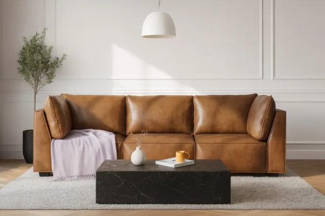 Elaine, Brown (Vegan Leather), Three Seater Sofa