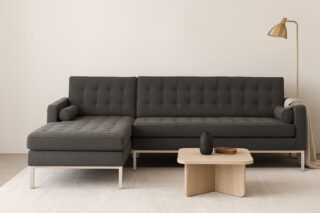 Florence Three Seater Sofa, Left Chaise, Dark Gray Wool