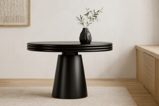 Saturn Round Pedestal Dining Table, Travertine, 47in