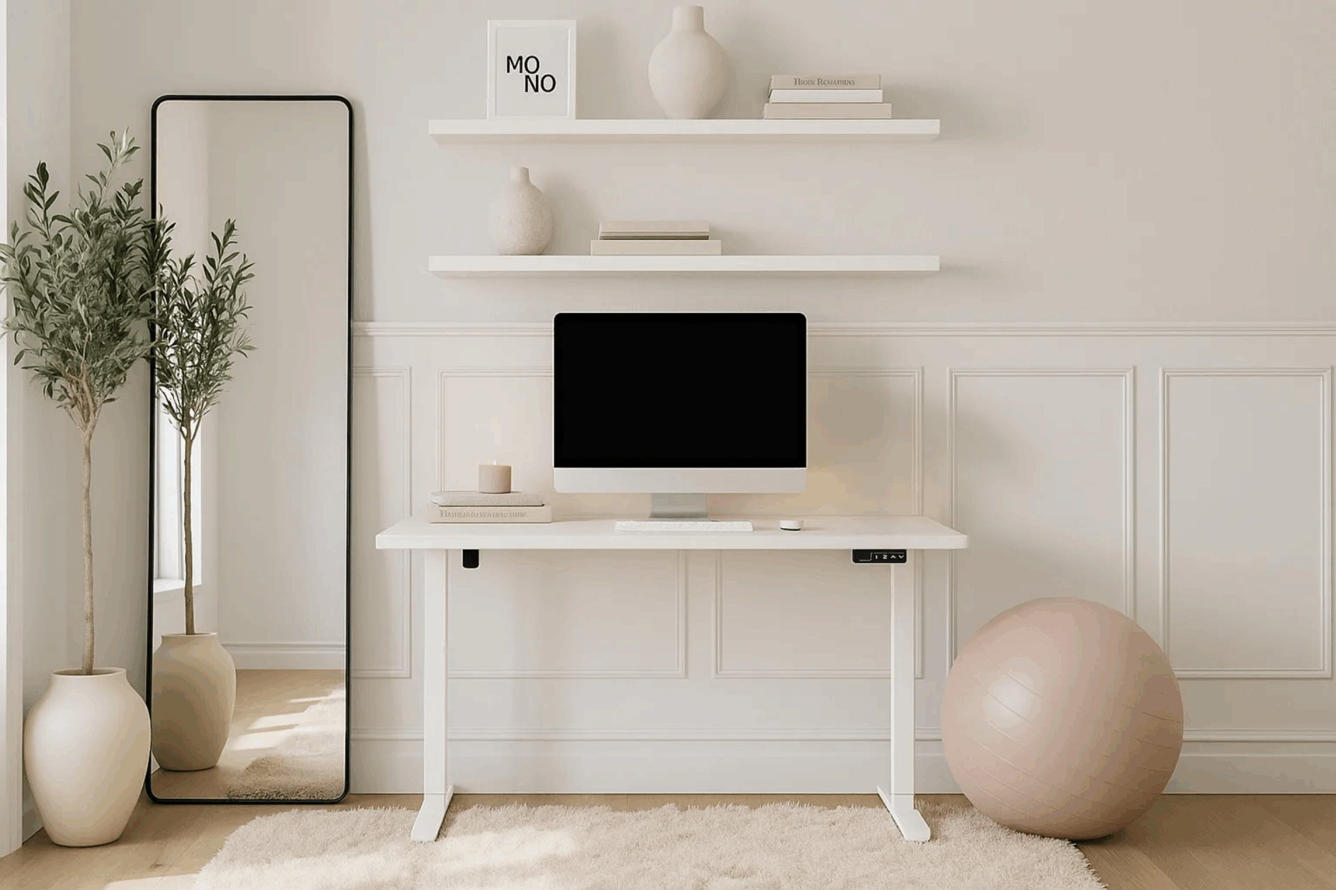 This electric standing desk in white embodies simplicity, clarity, and balance. Its clean, bright surface with rounded edges softens the modern silhouette, creating a light, inviting workspace. Built from durable MDF with a carbon steel base, it’s strong, stylish, and adjustable—supporting focus, comfort, and creativity every day. -