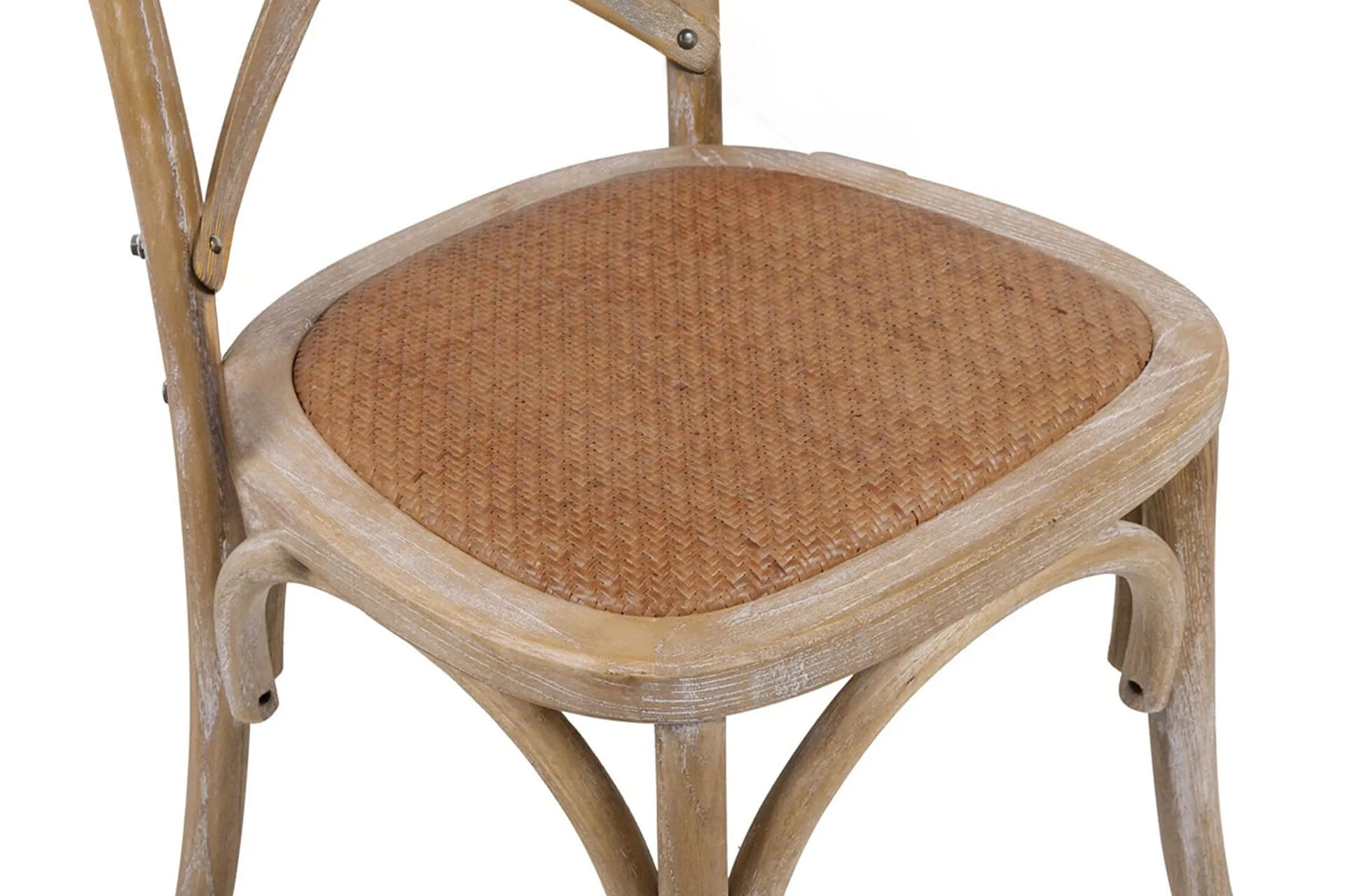 Carefully handmade with a handwoven rattan seat and sturdy wooden backrest, the Crossback Dining Chair blends artisan detail with everyday comfort. Inspired by French Country design, it brings a perfect balance of vintage charm and modern elegance into your home or dining space.