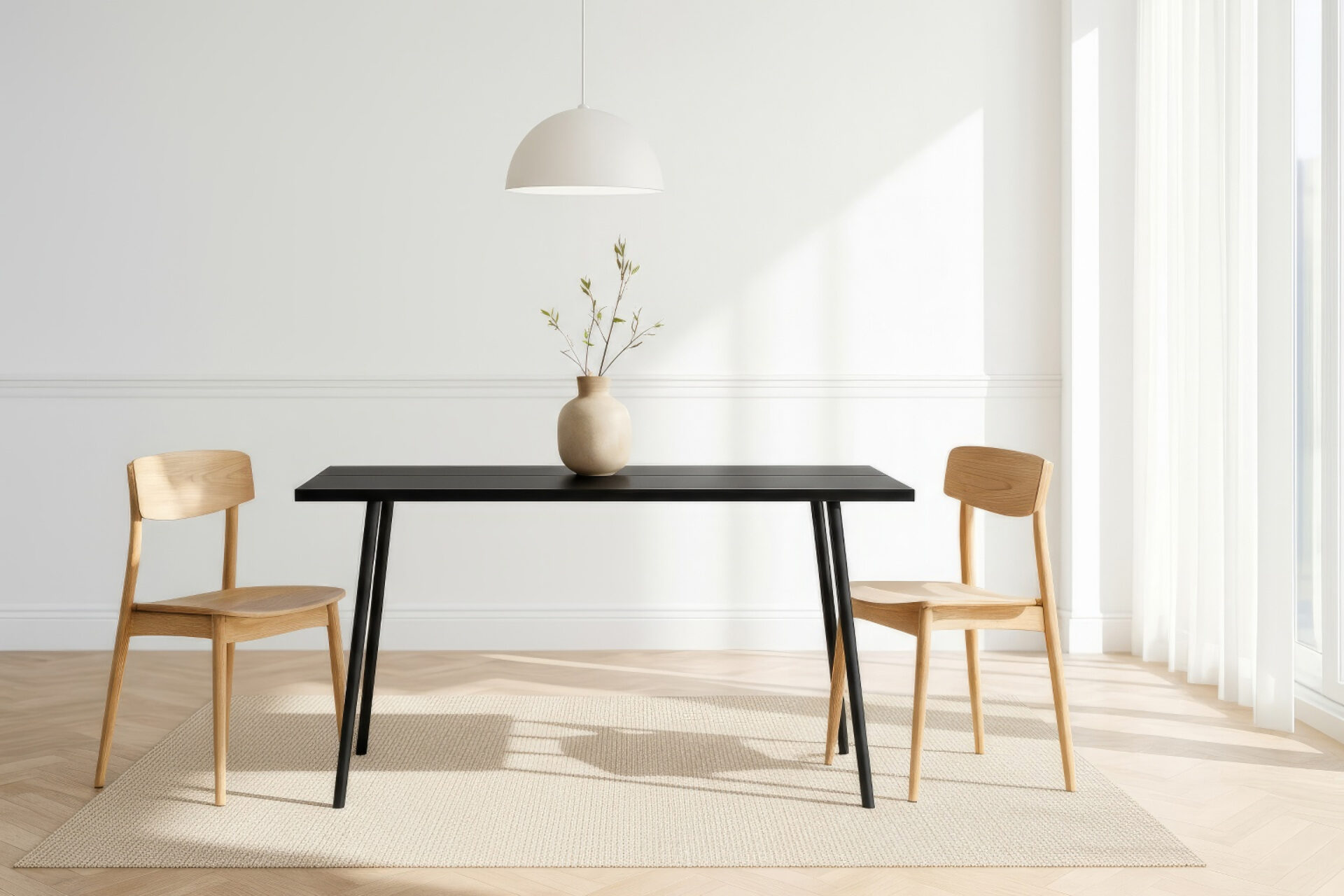 The Altana Dining Table in black brings quiet sophistication to compact spaces. Its sleek silhouette and smooth finish create an inviting atmosphere for intimate gatherings. Perfectly proportioned for smaller interiors, it blends modern minimalism with timeless charm — a serene stage for connection, comfort, and everyday elegance.