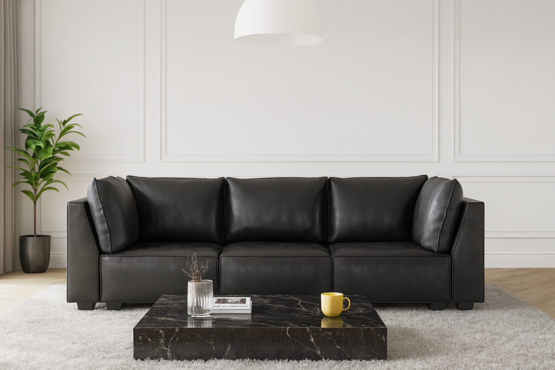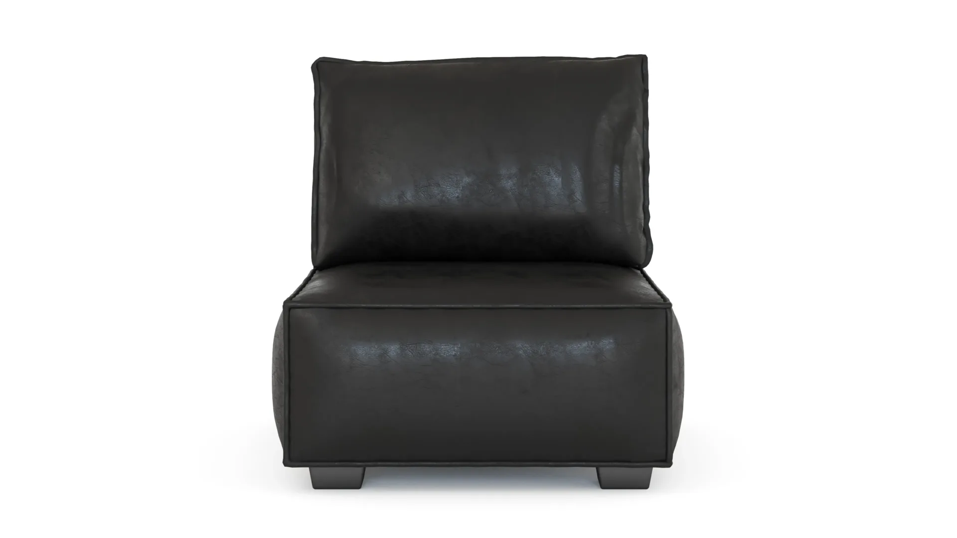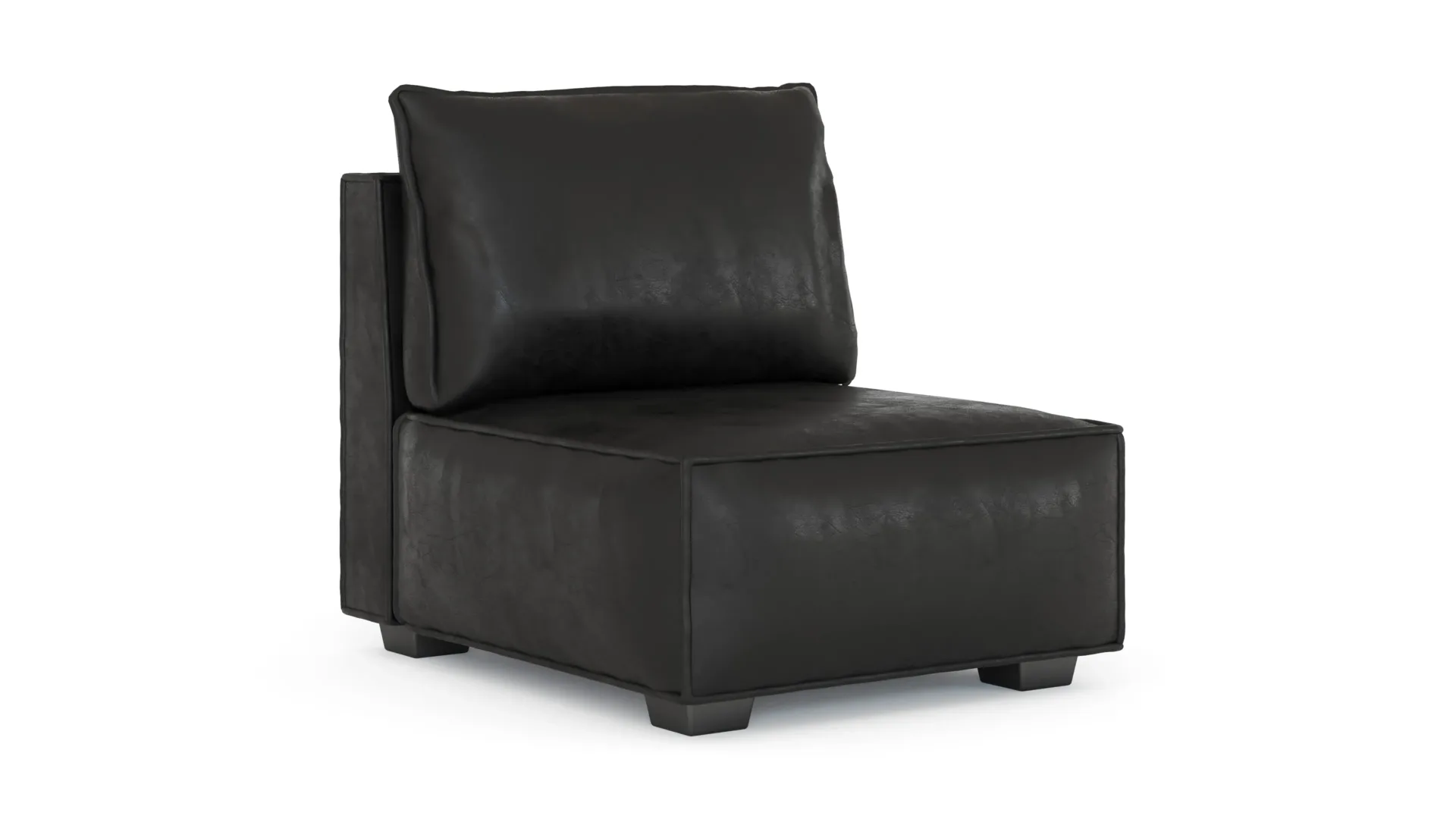The Elaine Armless Module in Black Vegan Leather unites Nordic minimalism with a modern edge. Durable and versatile, it adds bold elegance and enduring comfort to your home.