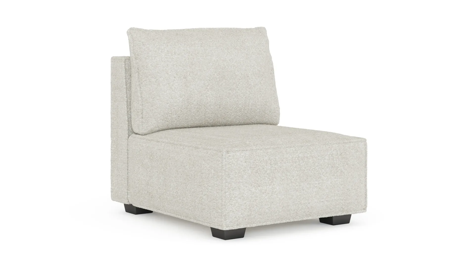 The Elaine Armless Module in White Bouclé offers timeless minimalism with versatile comfort. Crafted with care from sustainable materials, it blends seamlessly into your space with lasting elegance.