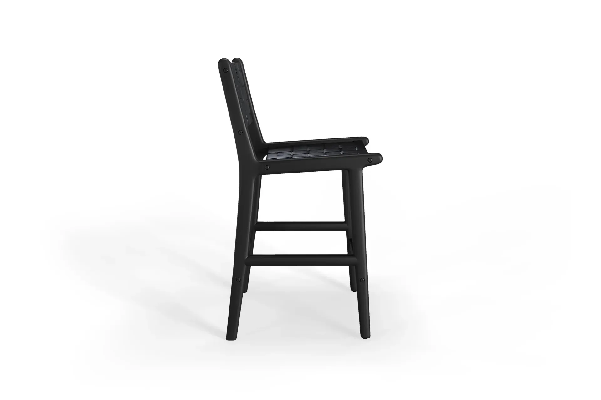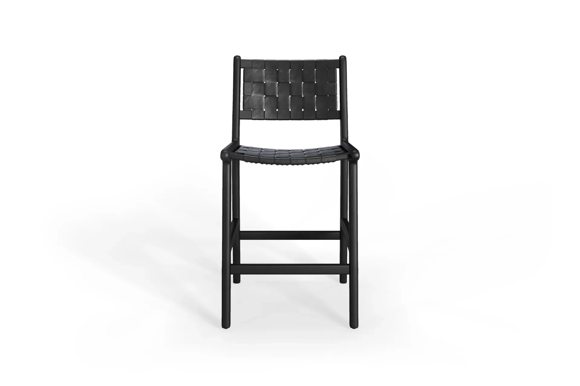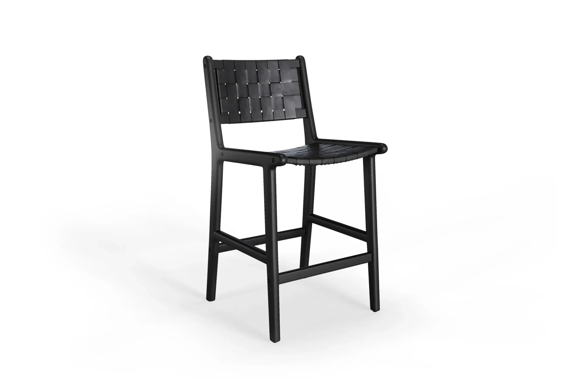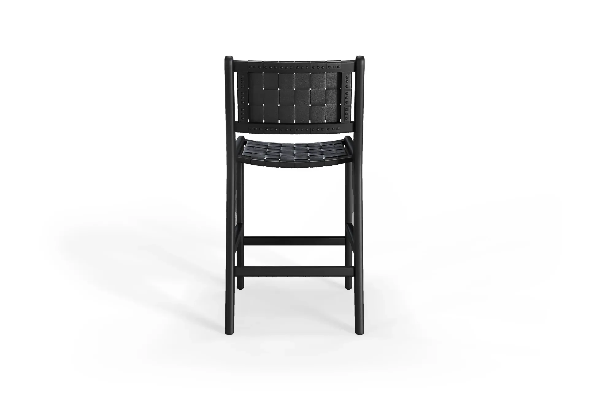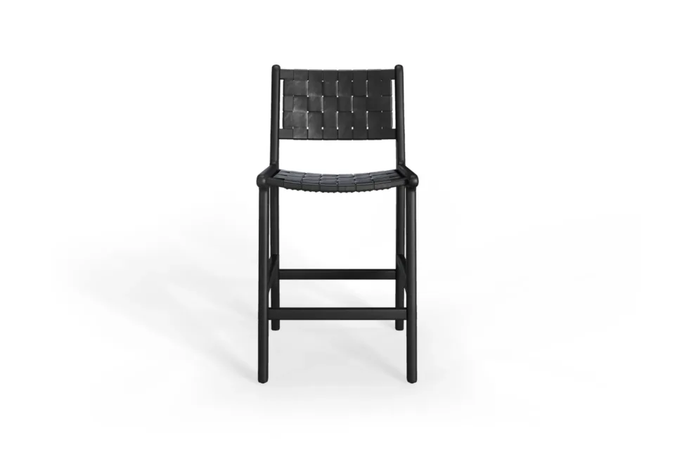 Sleek and sculptural, the Eyva Bar Chair in black wood and vegan leather exudes quiet sophistication. Its deep tones and refined lines bring depth and calm to any space, while the gently contoured seat provides lasting comfort. Perfect for modern kitchens or intimate bars, it balances strength with softness through its smooth textures and timeless silhouette. Every detail, from the rich grain of the wood to the supple seat, reflects thoughtful craftsmanship—creating an inviting piece that encourages you to pause, unwind, and enjoy every moment. -