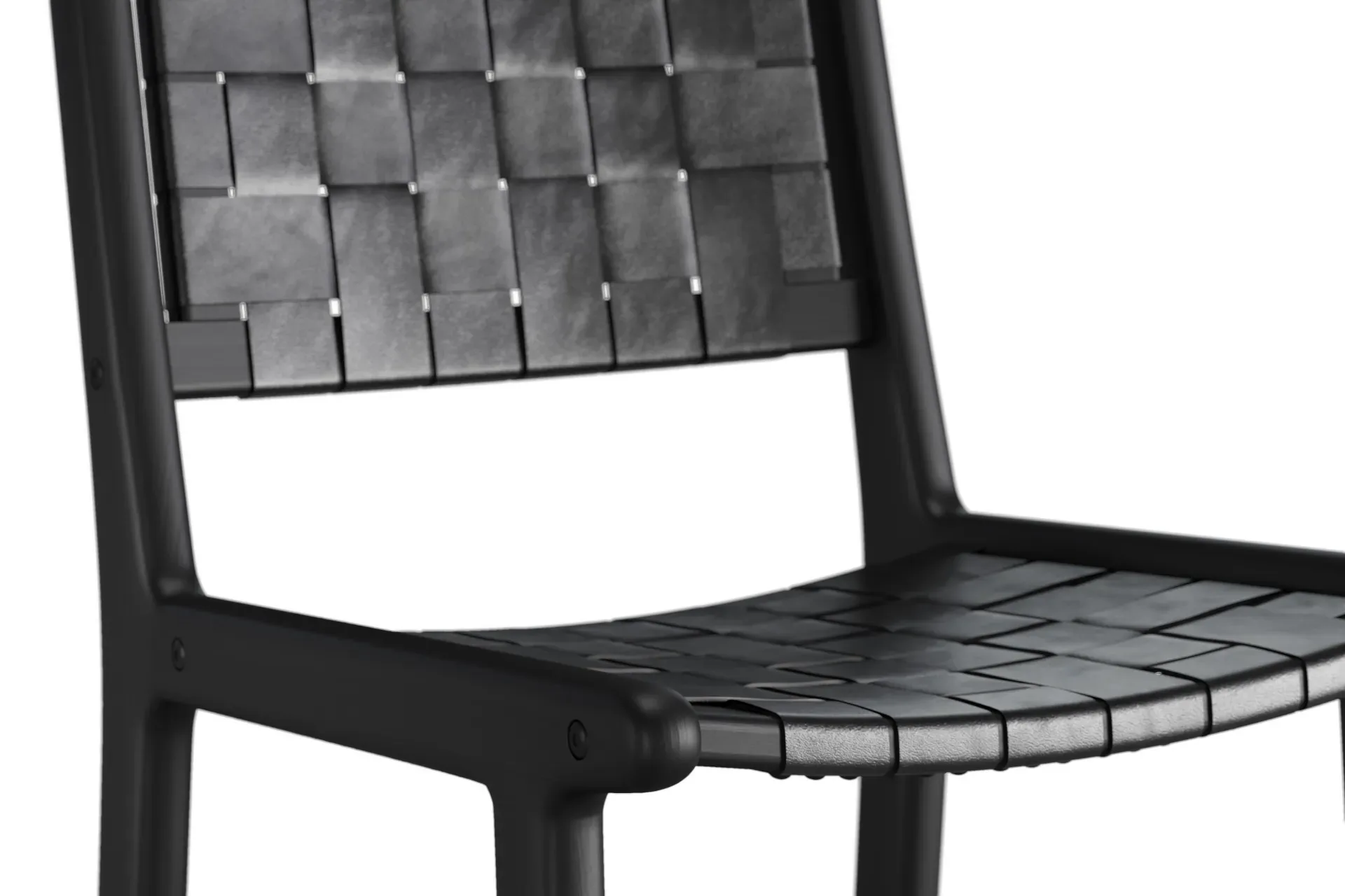 The Eyva Bar Chair in black wood and vegan leather embodies refined minimalism. Its deep tones and sculptural lines create a bold, grounded statement while offering comfort and elegance in perfect harmony. Designed for modern interiors, it blends timeless sophistication with everyday ease and effortless visual balance.