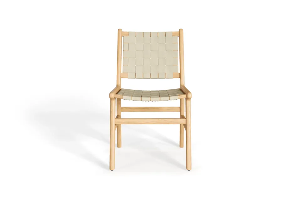 The Eyva Dining Chair in oak wood and beige vegan leather embodies natural serenity. Its soft tones and gentle textures create a calm, inviting atmosphere, while its crafted frame ensures durability. Designed for easy living, it adds warmth, balance, and effortless beauty to everyday gatherings.