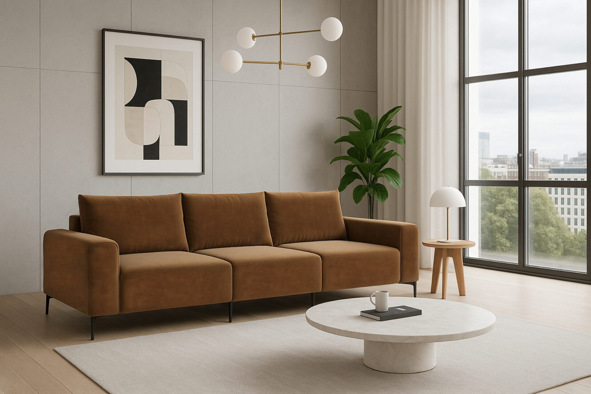 The Morgana Three Seater Sofa in Brown Velvet combines Scandinavian elegance with luxurious comfort. Upholstered in soft, eco-friendly velvet, it brings warmth, depth, and timeless sophistication to your living space. Spacious and inviting, it offers plush cushions and supportive seating that encourage natural posture and relaxation. Designed for family gatherings, friendly evenings, or quiet retreats, Morgana creates an atmosphere of elegance and calm. More than just furniture, it transforms your home with refined style and enduring comfort, becoming a timeless centrepiece for modern living. -