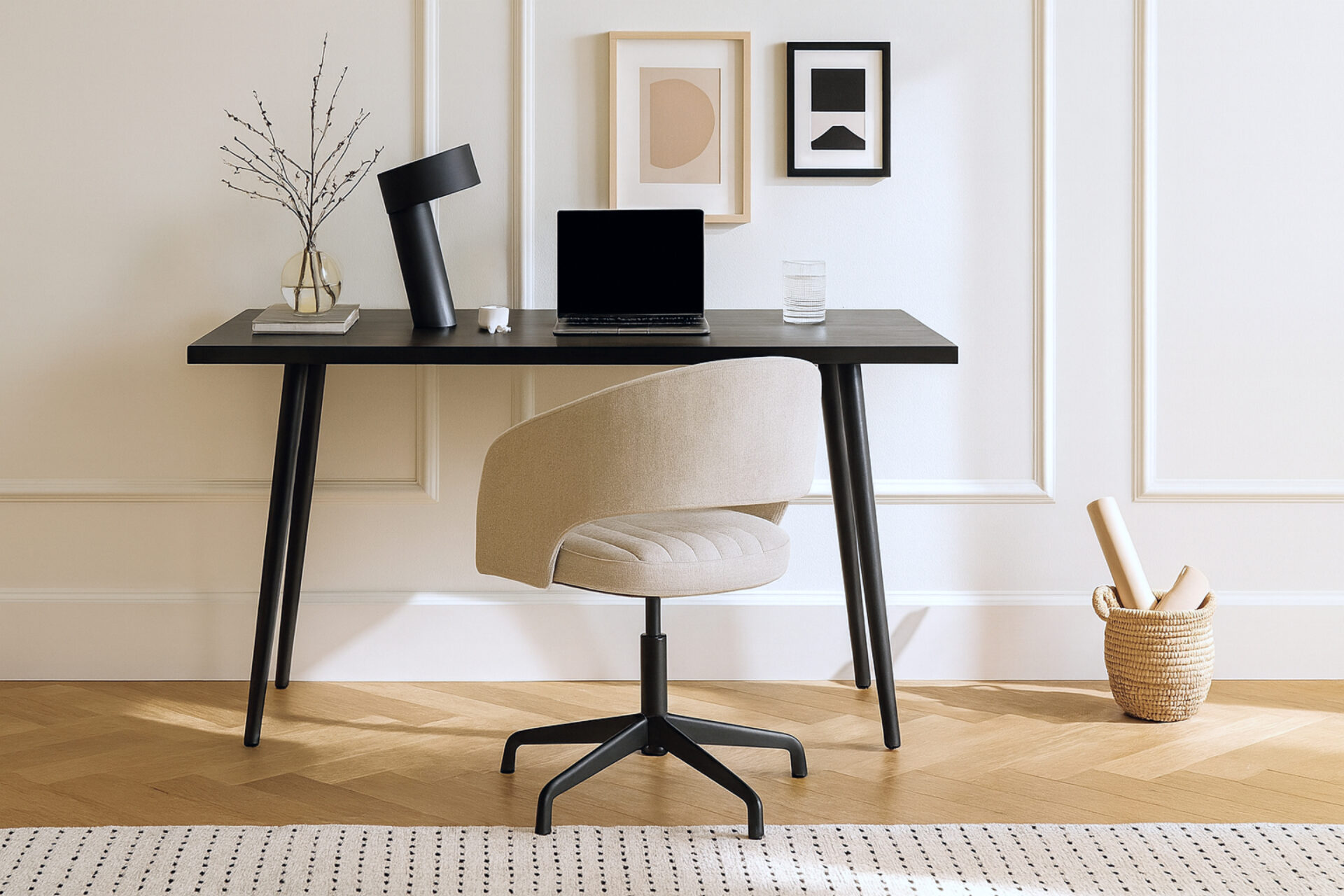 The Astrid Office Desk in deep black brings quiet sophistication to your space. Its monochrome design feels modern yet warm, creating a calm corner for focus and creativity. Perfectly balanced, it blends strength and elegance in true Scandinavian style.
