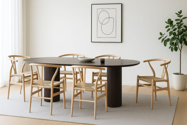 The Raylan Dining Chair in black embodies quiet strength and refined elegance. Its dark finish adds depth and presence, while the natural wood grain subtly shines through. Grounded yet graceful, it brings modern serenity and timeless sophistication to any dining space.