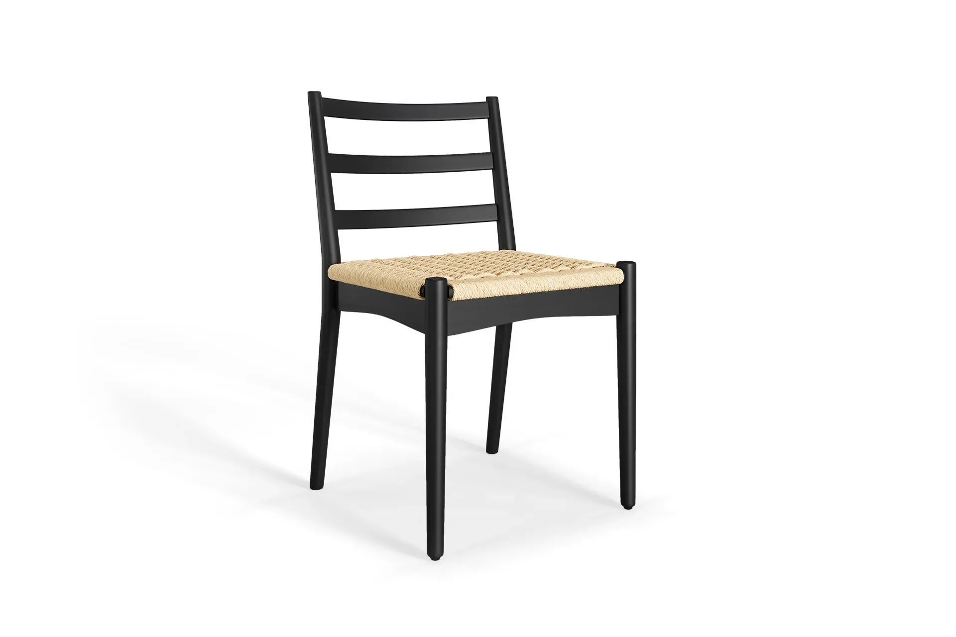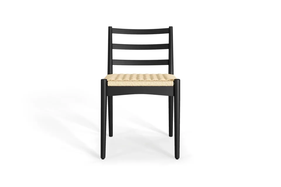 The Raylan Dining Chair in black strikes a perfect harmony between boldness and warmth. Its solid wood frame, finished in a deep matte tone, pairs beautifully with the handwoven natural paper cord seat. Designed with a gently curved backrest for enhanced comfort, it encourages lingering moments around the table. Blending modern lines with traditional craftsmanship, this chair brings understated sophistication and timeless character to any dining space. A statement in contrast, it complements both contemporary and classic interiors with ease. -