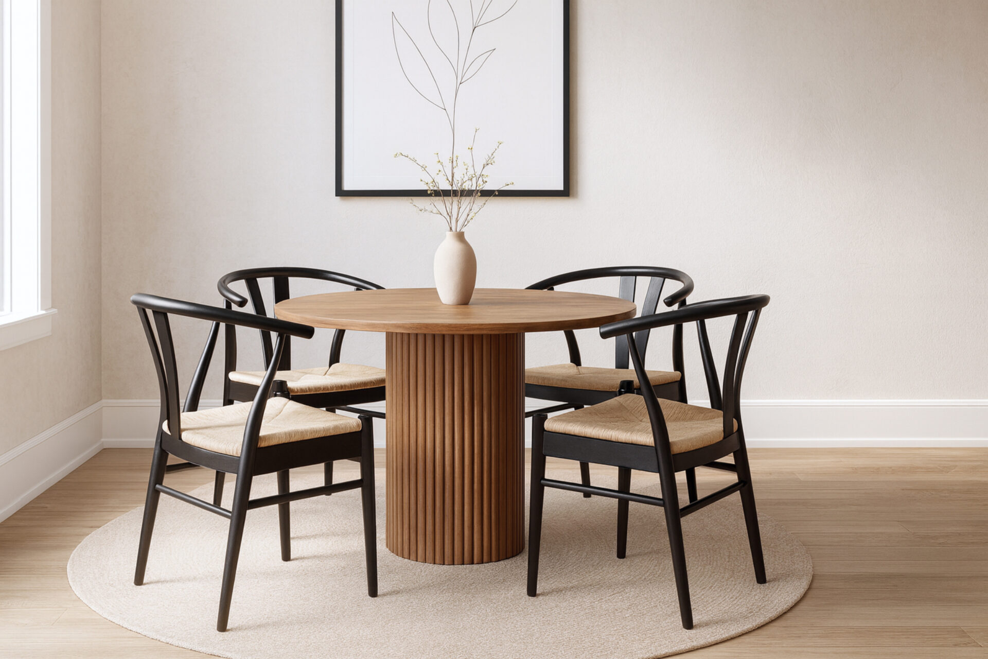 The Swedish Dining Chair in black brings striking contrast and timeless elegance to any dining space. Inspired by Hans Wegner’s 1949 Wishbone design, it captures the spirit of mid-century modernism with a sleek, handcrafted frame. Each chair is assembled by skilled artisans for comfort, durability, and balance. Its dark finish adds depth and sophistication, making it an ideal choice for both contemporary and classic interiors. Refined yet inviting, this piece transforms everyday dining into an experience of lasting beauty and calm. -
