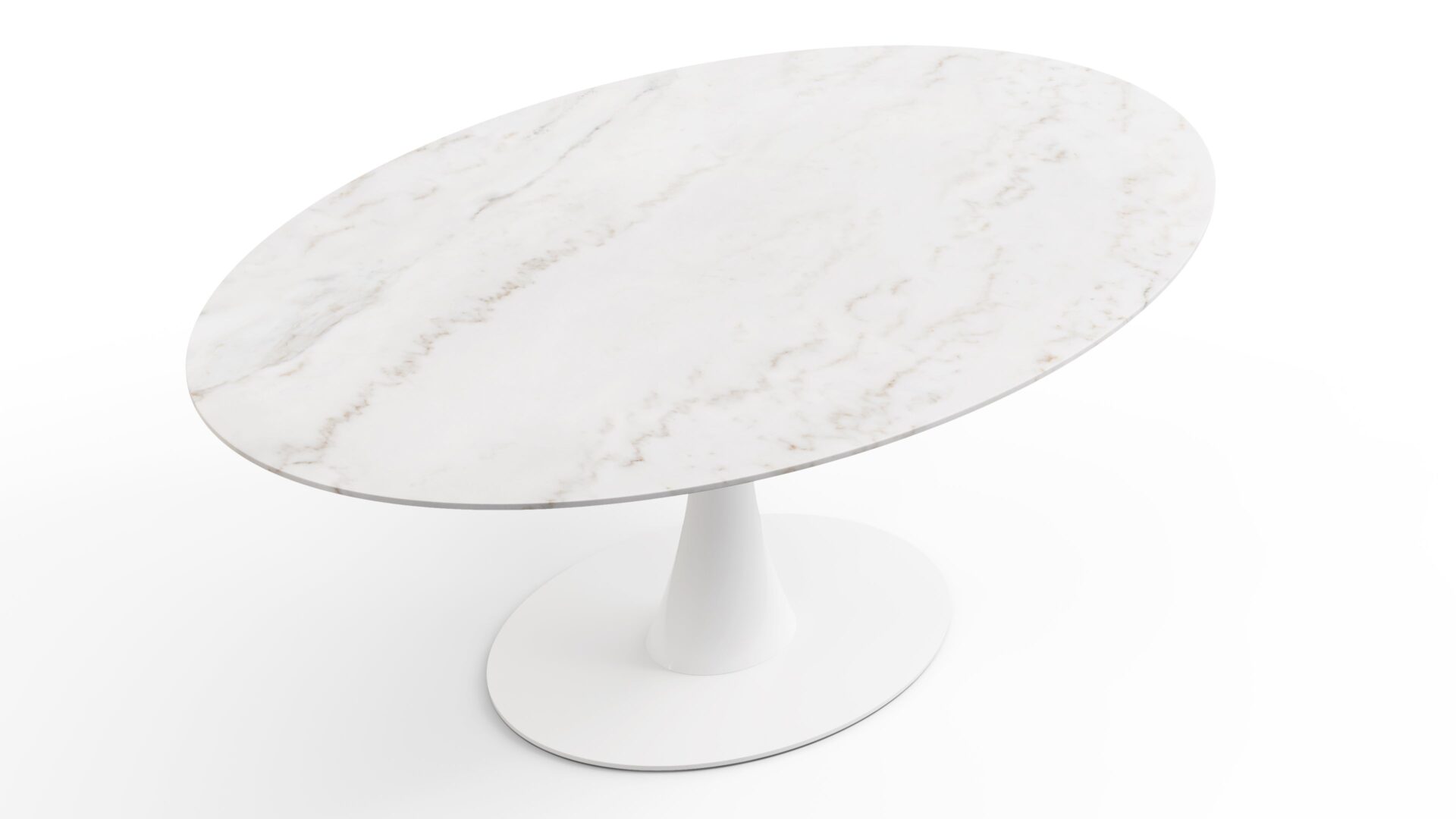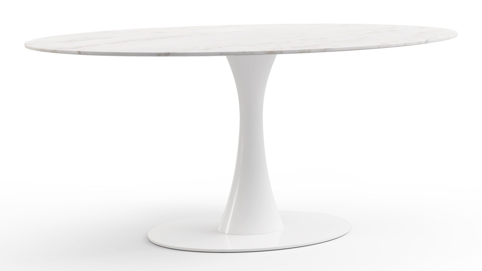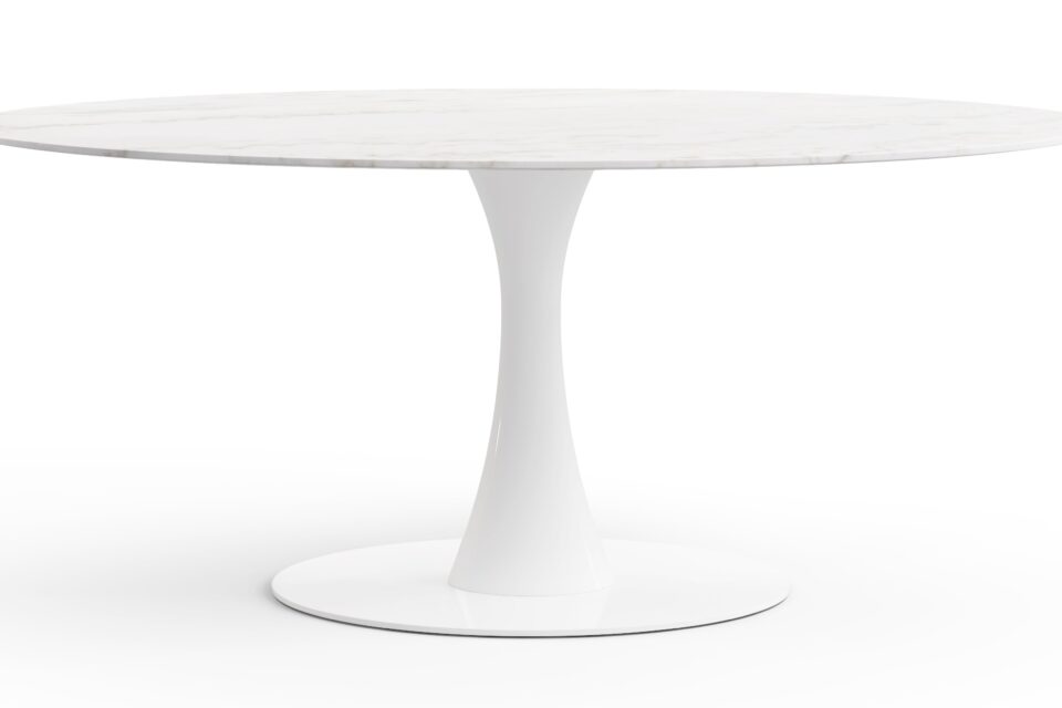 Introducing the sophisticated Aarhus Table, boasting a chic pedestal base that modernizes dining with its sleek design. Inspired by mid-1950s futuristic aesthetics, the table doubles as a stylish desk alternative. Enter the variant with a stunning Calacatta Marble tabletop - an exquisite blend of elegance and functionality. This versatile piece effortlessly elevates any space, promising a timeless and minimalist solution for your furniture needs.