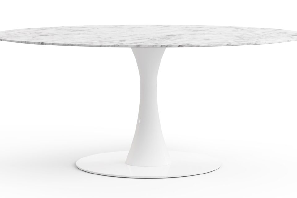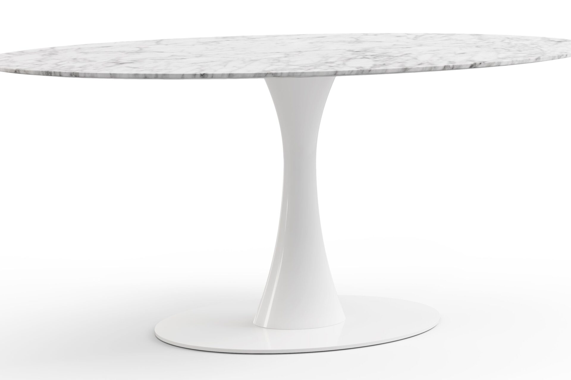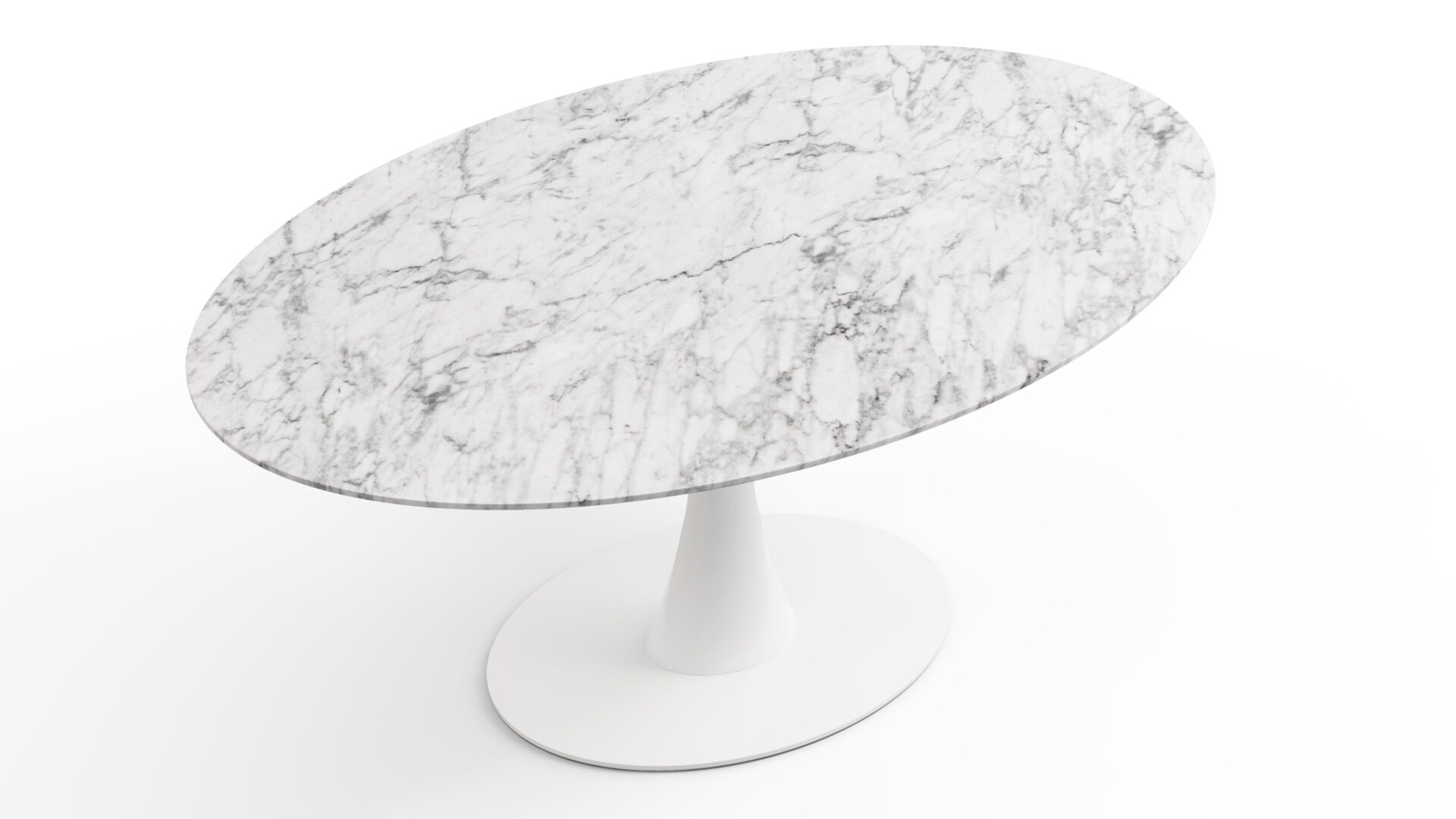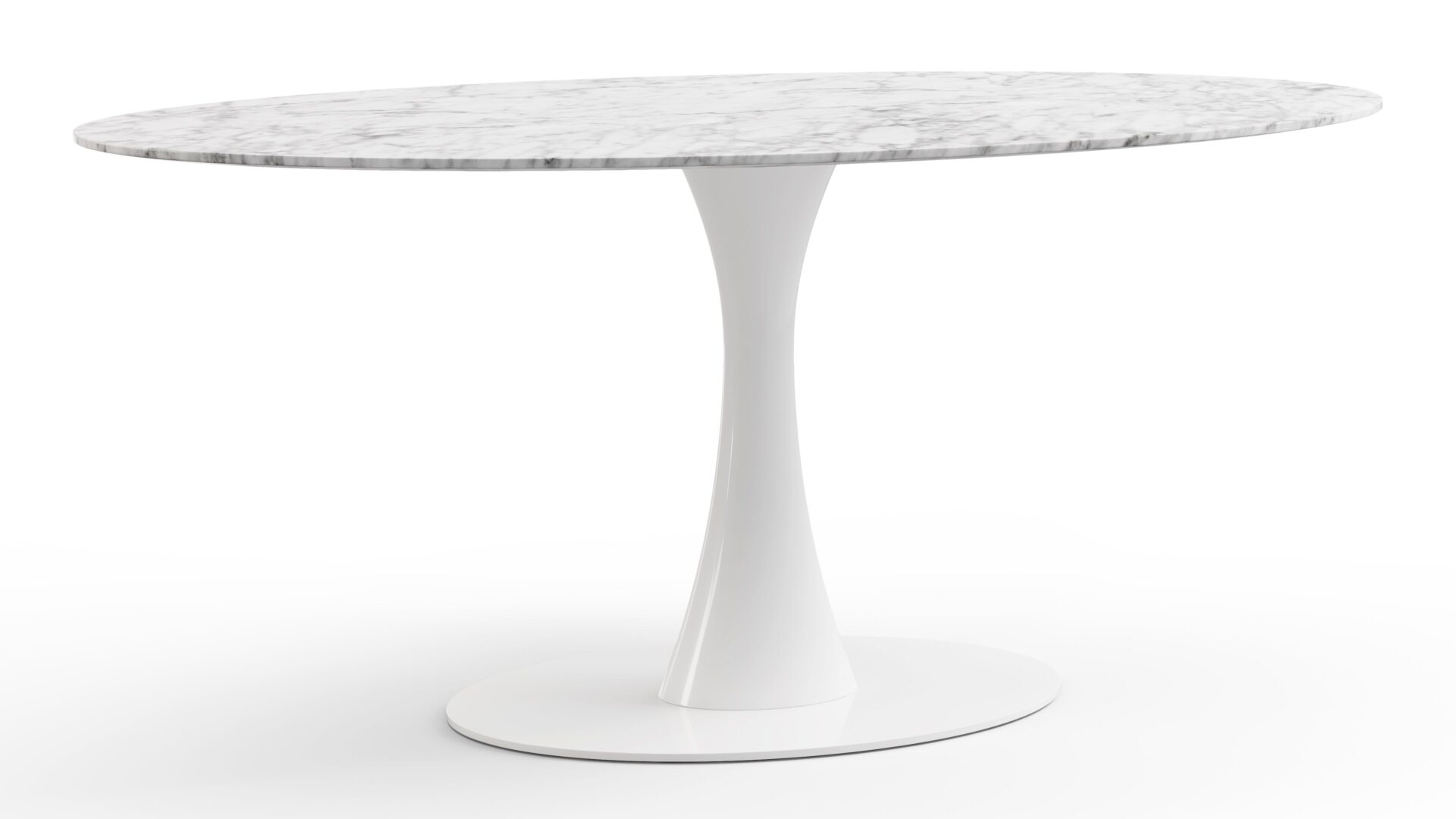 Introducing the Aarhus Table, a chic and modern masterpiece boasting a sleek pedestal base that swaps traditional legs for a sturdy central support. Inspired by mid-century futuristic aesthetics, this versatile piece functions as a stylish dining table or contemporary desk alternative. The Aarhus Table in Carrara Marble is a timeless, elegant addition that seamlessly elevates any space with its timeless design. Ideal for daily use and easy maintenance, this dazzling piece promises to transform your home into a sophisticated haven of style.