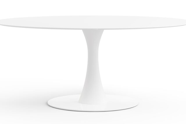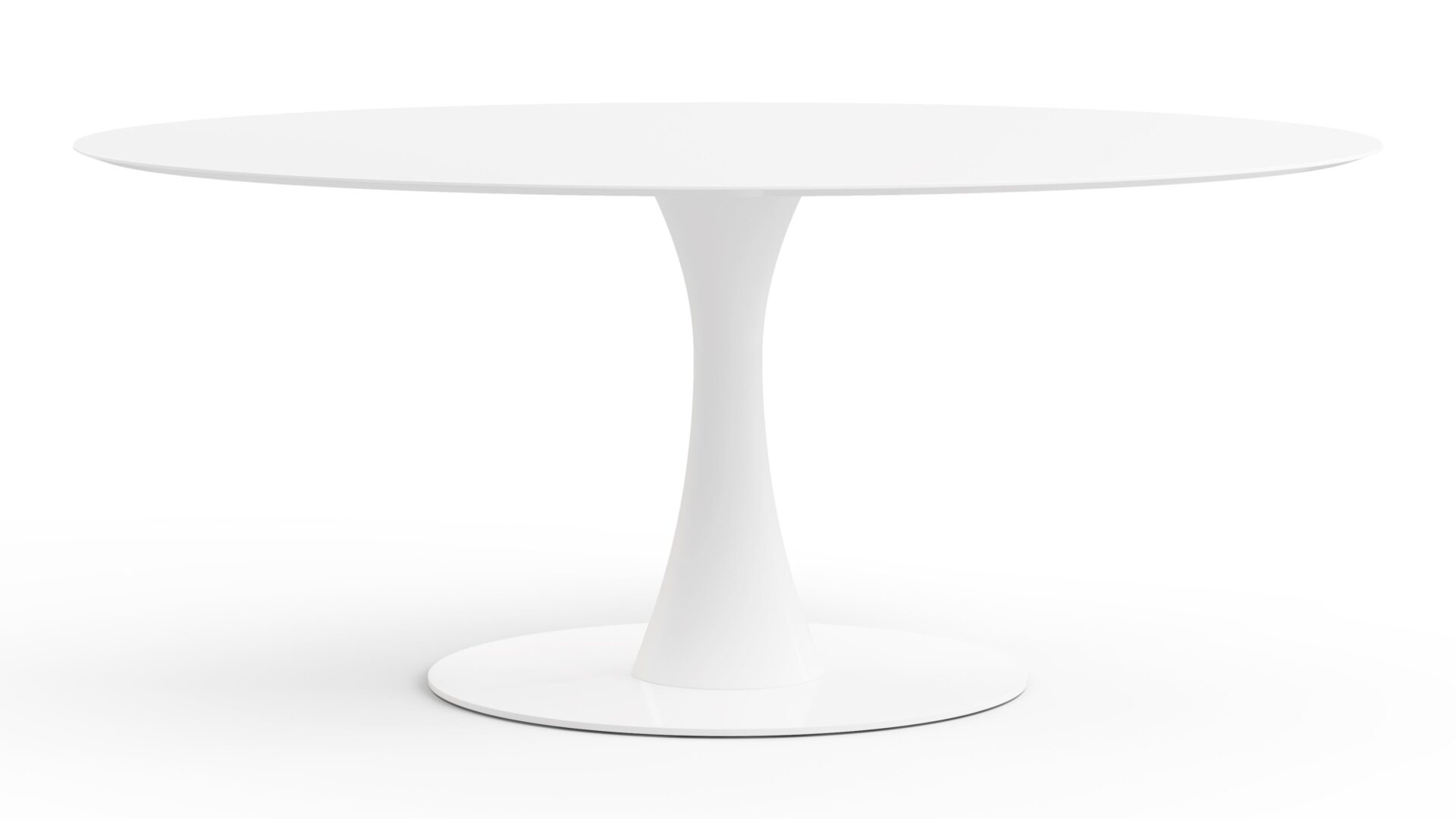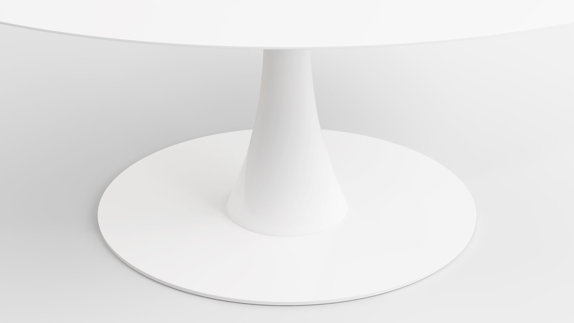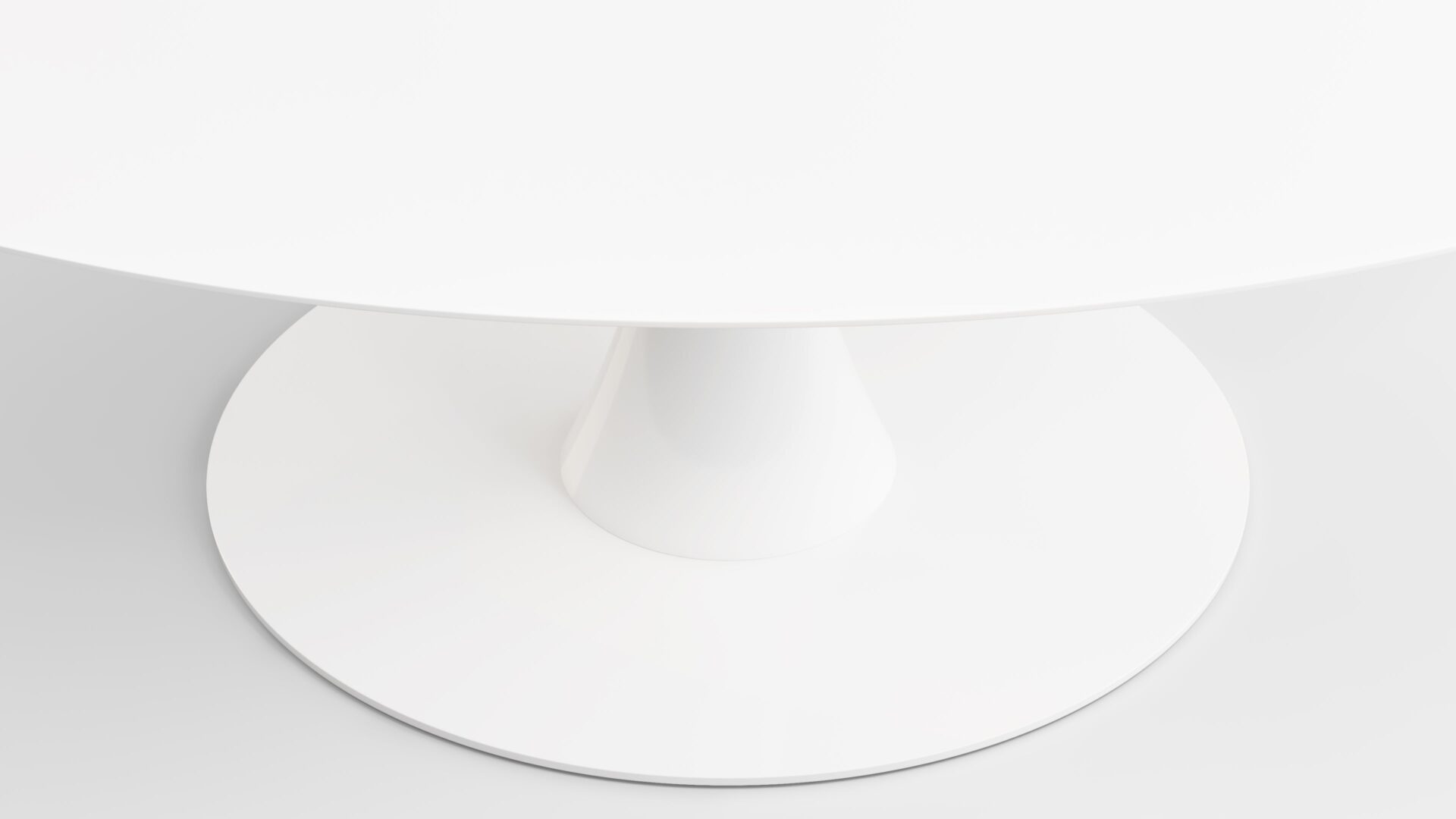 Discover the Aarhus Table, a chic piece exuding style with its pedestal base, elegantly replacing traditional legs for a sleek and modern touch. Inspired by futuristic aesthetics from the mid-1950s, this versatile table serves both dining and desk needs with poise. In stunning white lacquer, this minimalist marvel brings a contemporary edge to any space, promising enduring elegance and quality craftsmanship for a lasting impression.