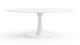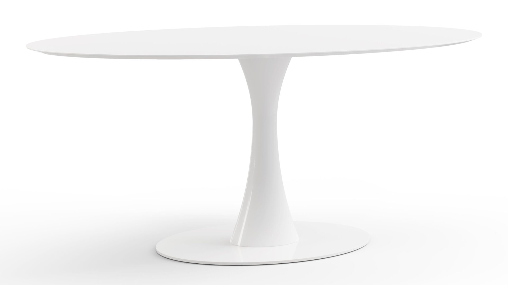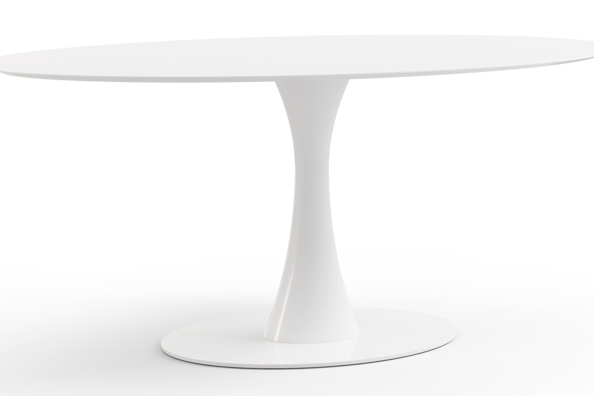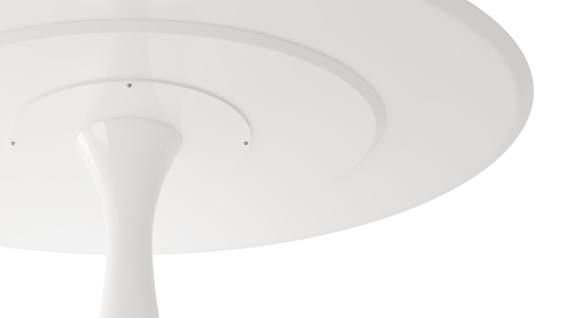 Discover the Aarhus Table, a chic piece exuding style with its pedestal base, elegantly replacing traditional legs for a sleek and modern touch. Inspired by futuristic aesthetics from the mid-1950s, this versatile table serves both dining and desk needs with poise. In stunning white lacquer, this minimalist marvel brings a contemporary edge to any space, promising enduring elegance and quality craftsmanship for a lasting impression.