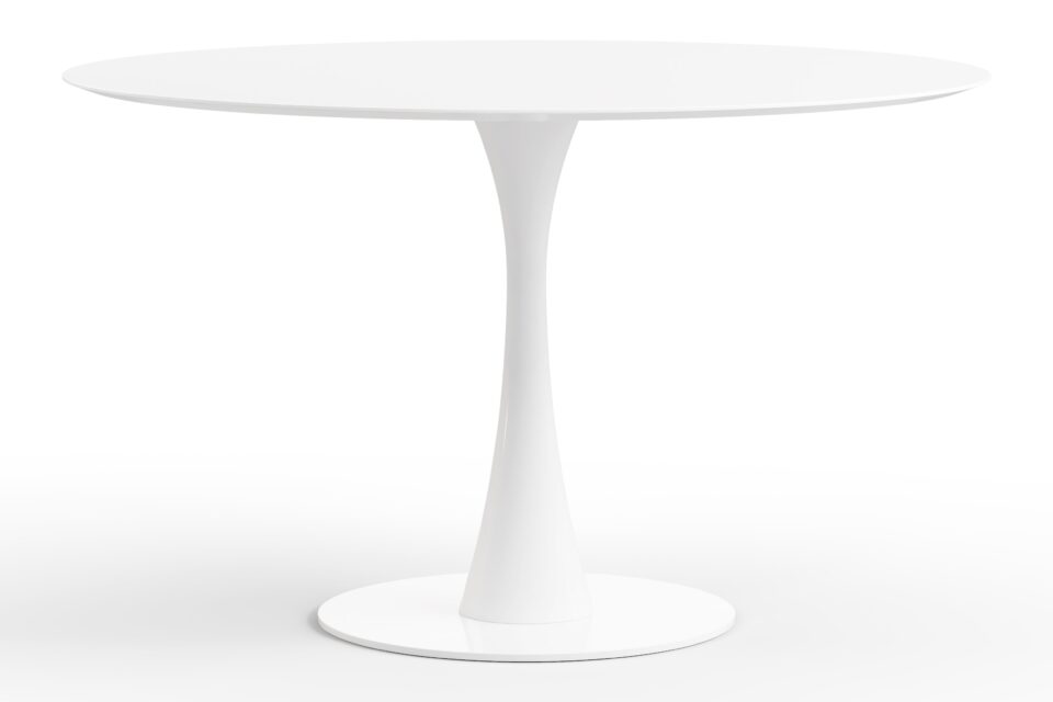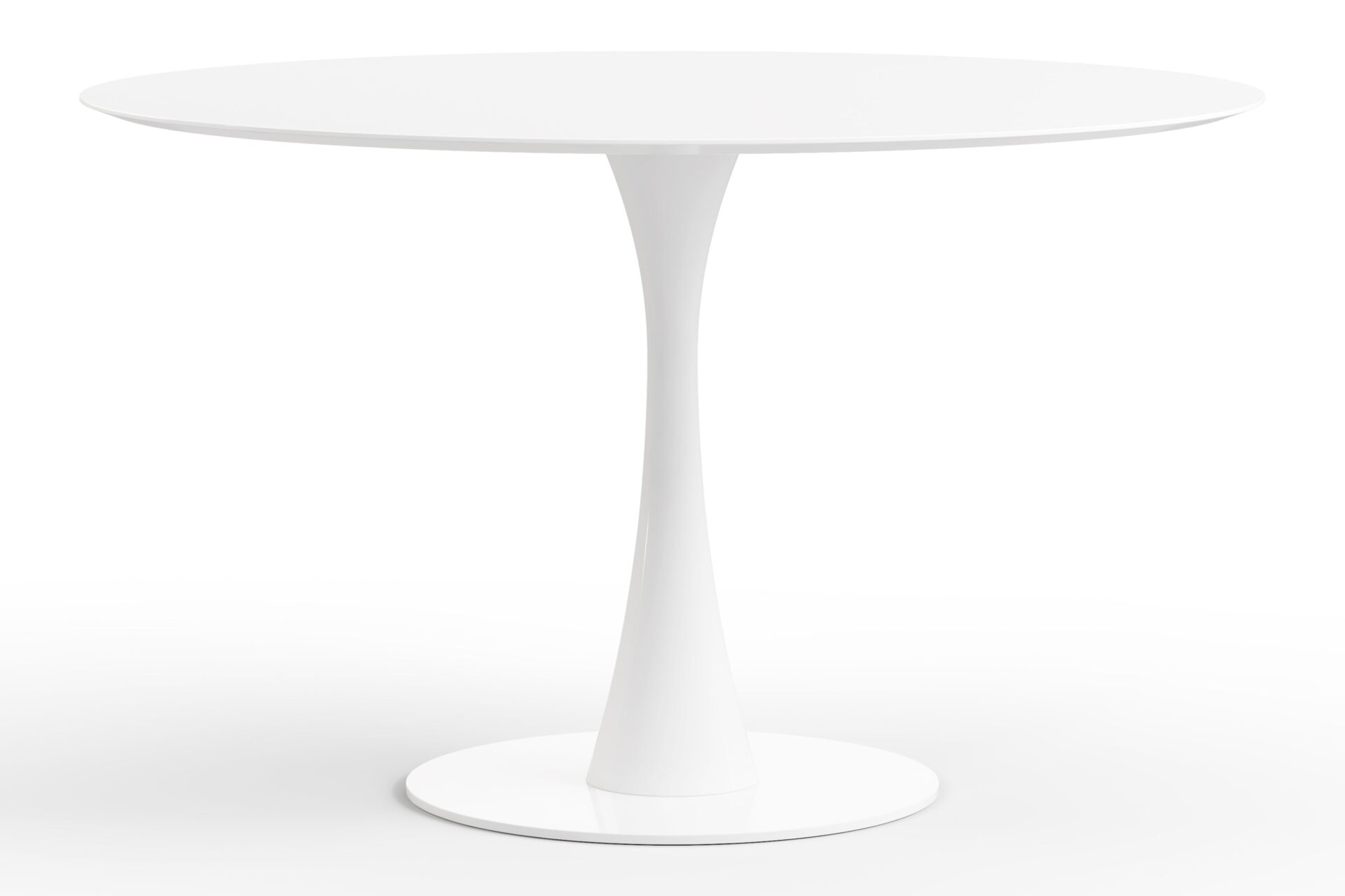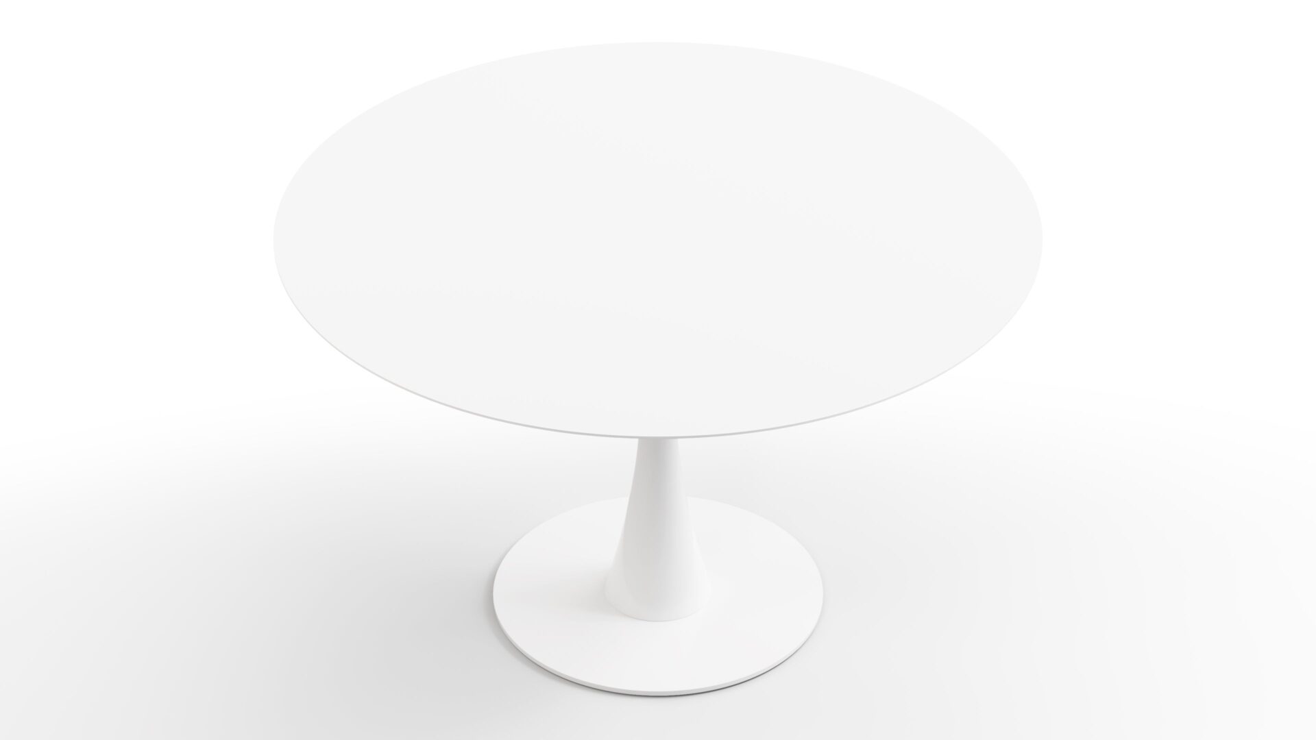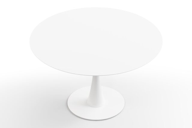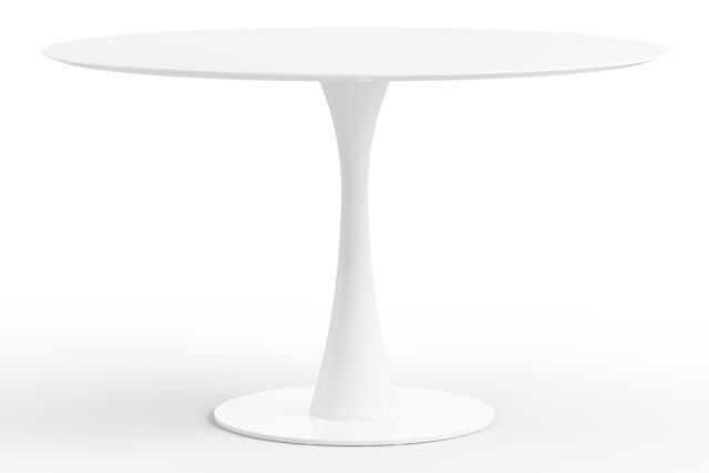 Revamp your space with the Aarhus Table, boasting a chic design and sturdy pedestal base that swaps traditional legs for a sleek central support. Inspired by futuristic mid-1950s aesthetics, this versatile minimalist piece serves as a dining table or contemporary desk. The white lacquer finish adds a touch of sophistication and durability, making it perfect for daily use, effortlessly blending in with any decor.