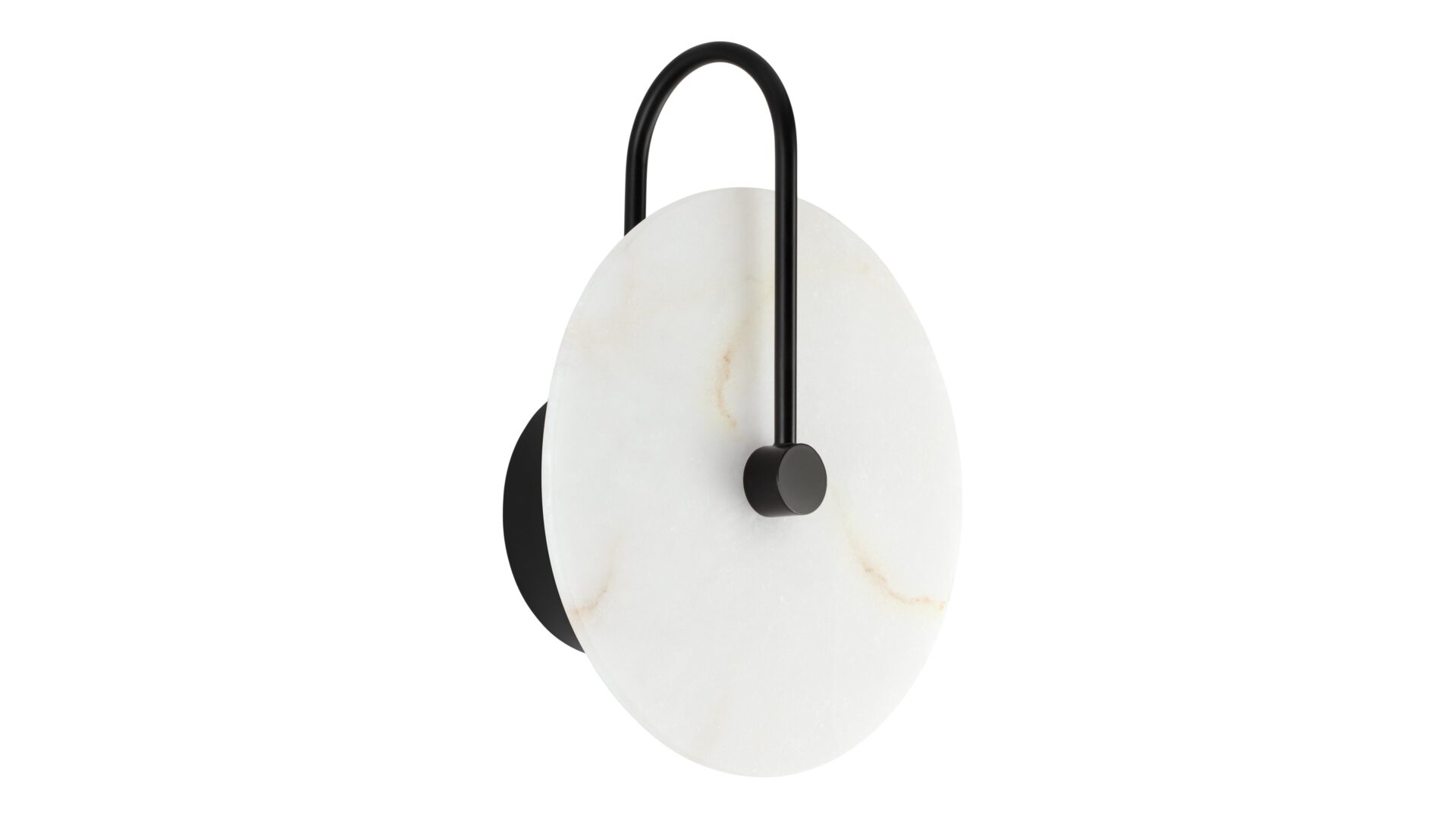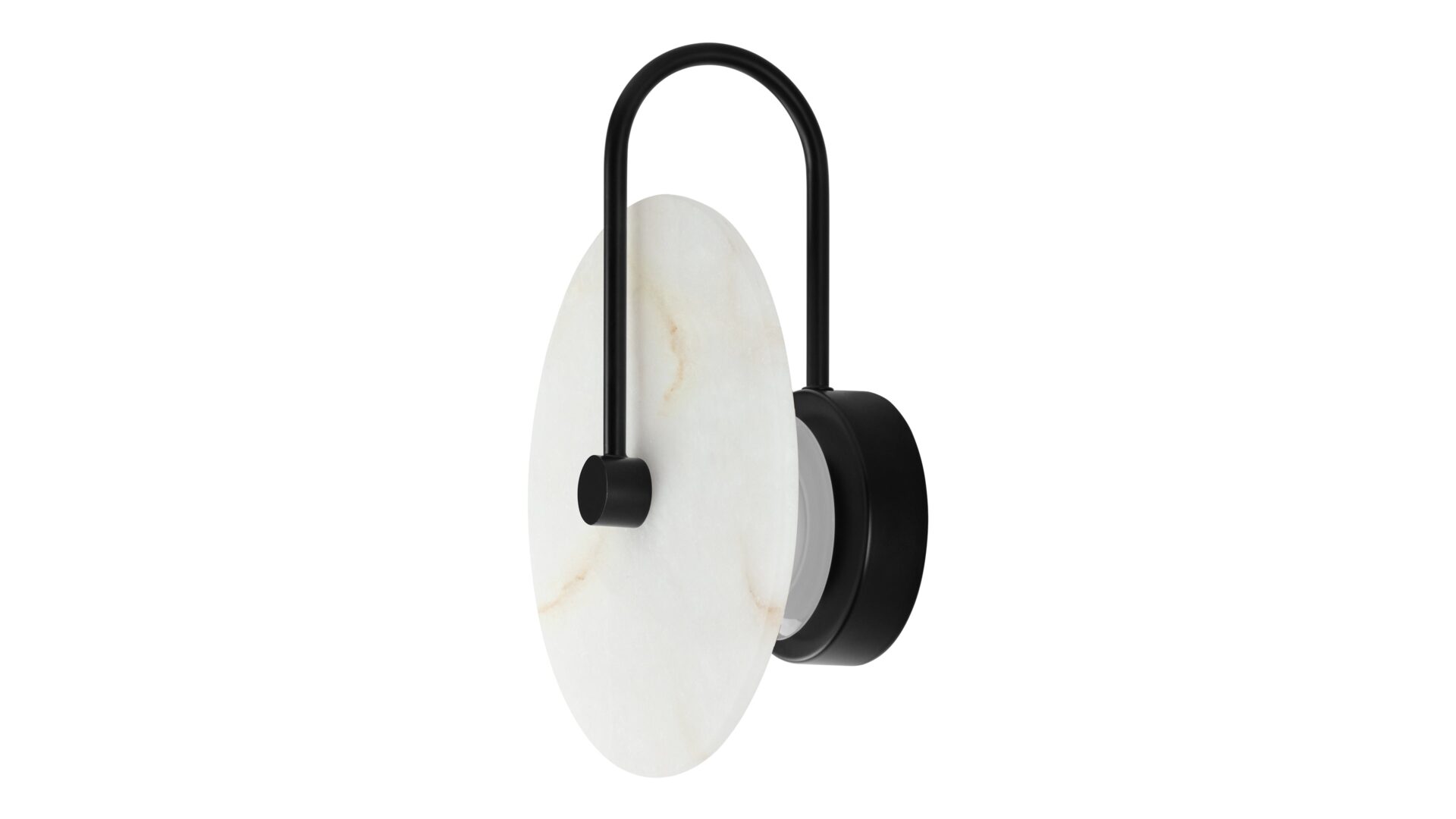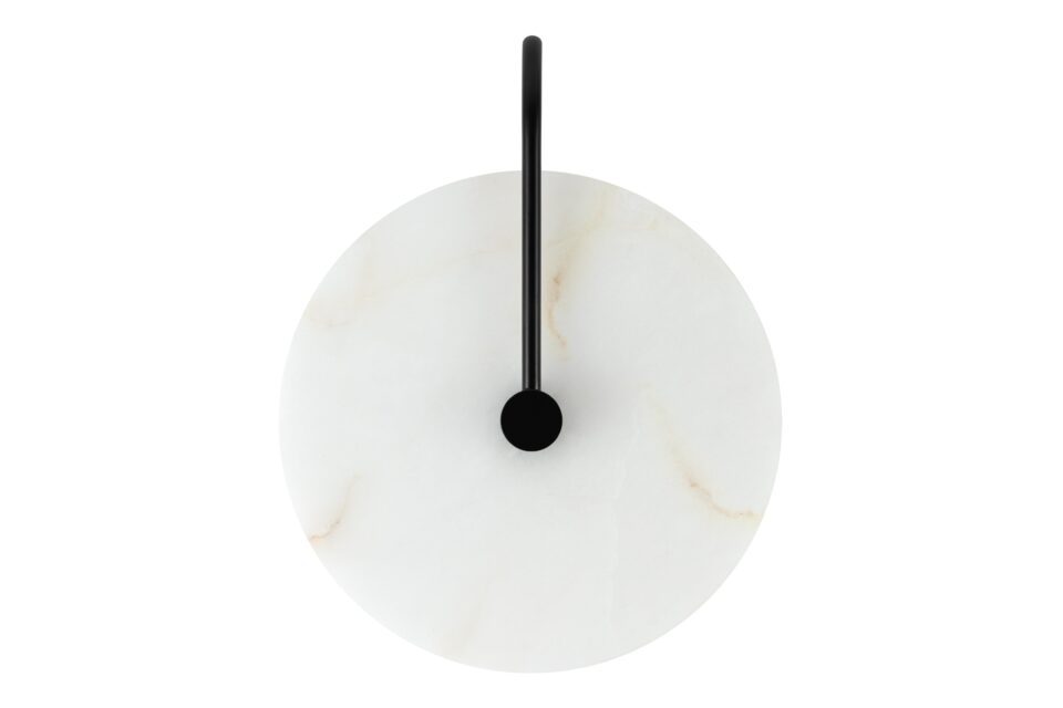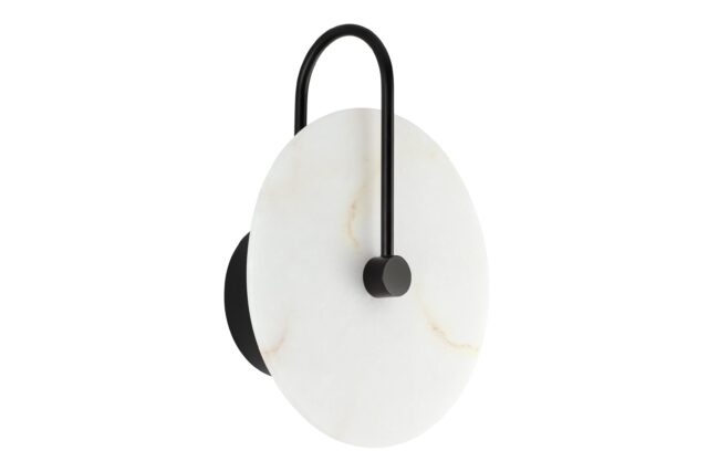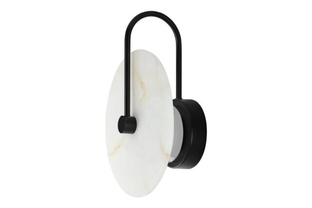 Discover the Ada Wall Sconce showcasing a sleek black metal frame, crafted with meticulous precision. This frame provides a robust base for the exquisite alabaster shade, offering a striking juxtaposition between the durability of metal and the delicate beauty of the natural stone.