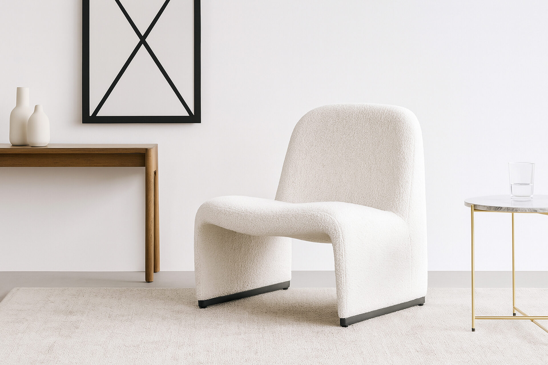 Experience the sculptural elegance of our Alky lounge chair, designed for the perfect balance of comfort and style. With its distinctive curvaceous silhouette and minimalist design, the Alky exudes sophistication. Its plush cushioned frame enchants atop delicate metal feet, creating an illusion of weightlessness. Embrace timeless appeal with the Alky chair, a mid-century classic that seamlessly blends comfort and style. The Landon Modern Occasional Chair is a versatile piece perfect for various spaces, boasting a sleek, spacious design. Discover luxurious comfort in the Alky chair, draped in premium heavyweight boucle for a stylish and sumptuous touch.