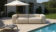 Introducing a collection showcasing a boxy silhouette with deep seating, enveloped in a neutral beige outdoor fabric and bolstered by a stylish aluminum frame, seamlessly merging contemporary design with resilient materials.