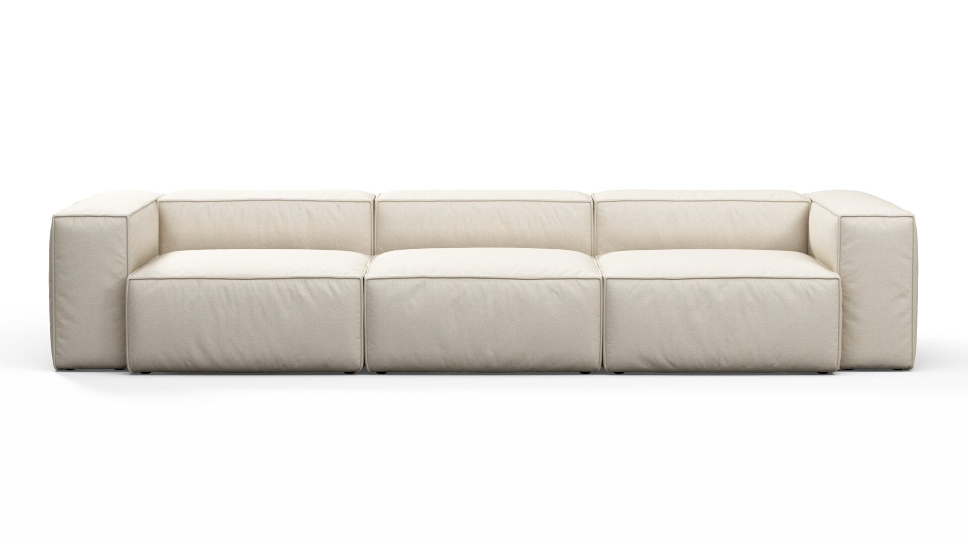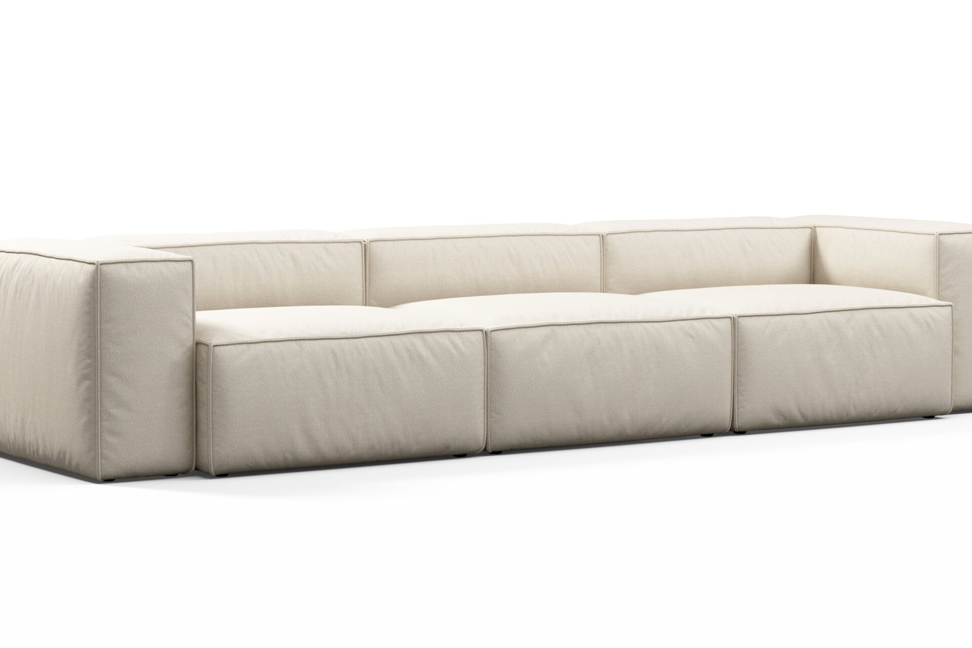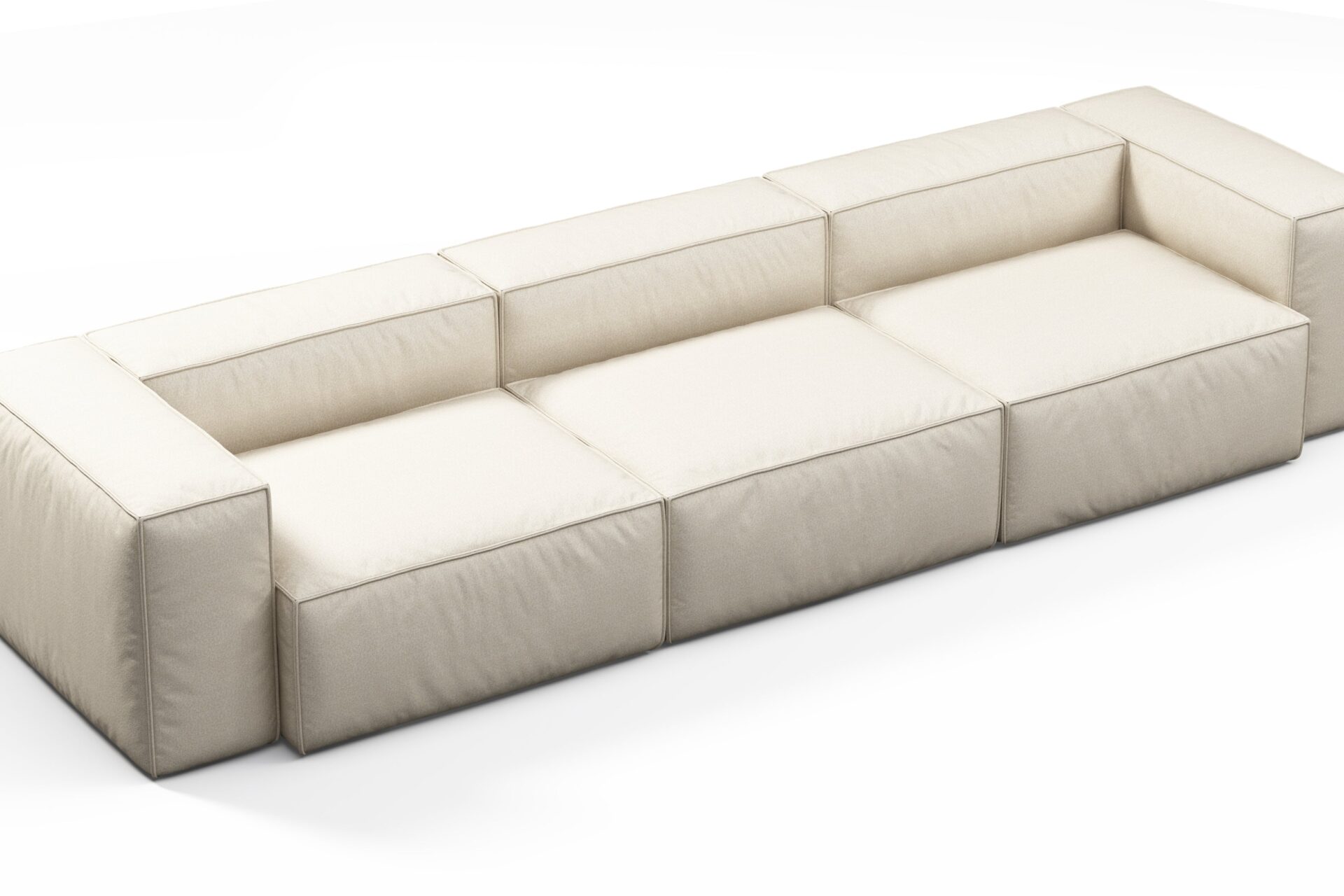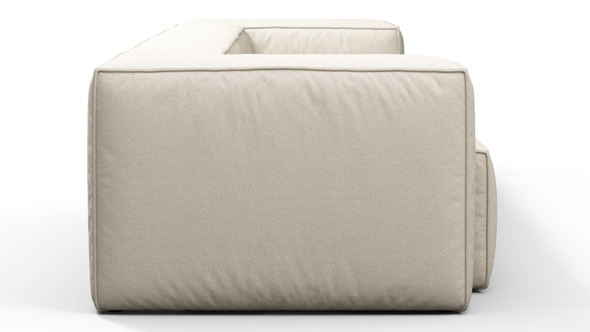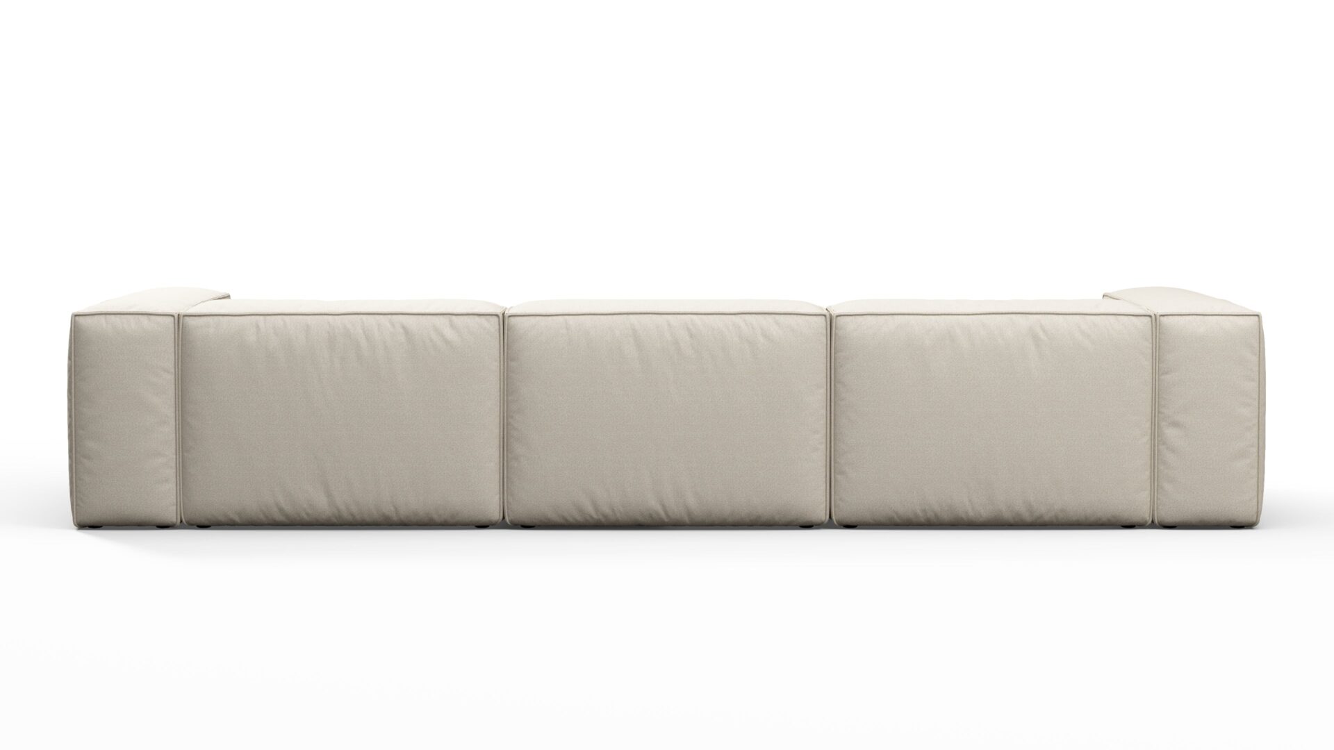 Introducing a collection showcasing a boxy silhouette with deep seating, enveloped in a neutral beige outdoor fabric and bolstered by a stylish aluminum frame, seamlessly merging contemporary design with resilient materials.