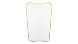 Its elongated, curved form is framed in a slim metal border—available in brass or matte black—for a clean, sculptural presence. The design’s softened edges and linear simplicity lend it a quiet versatility, well-suited to both minimalist and more eclectic interiors.