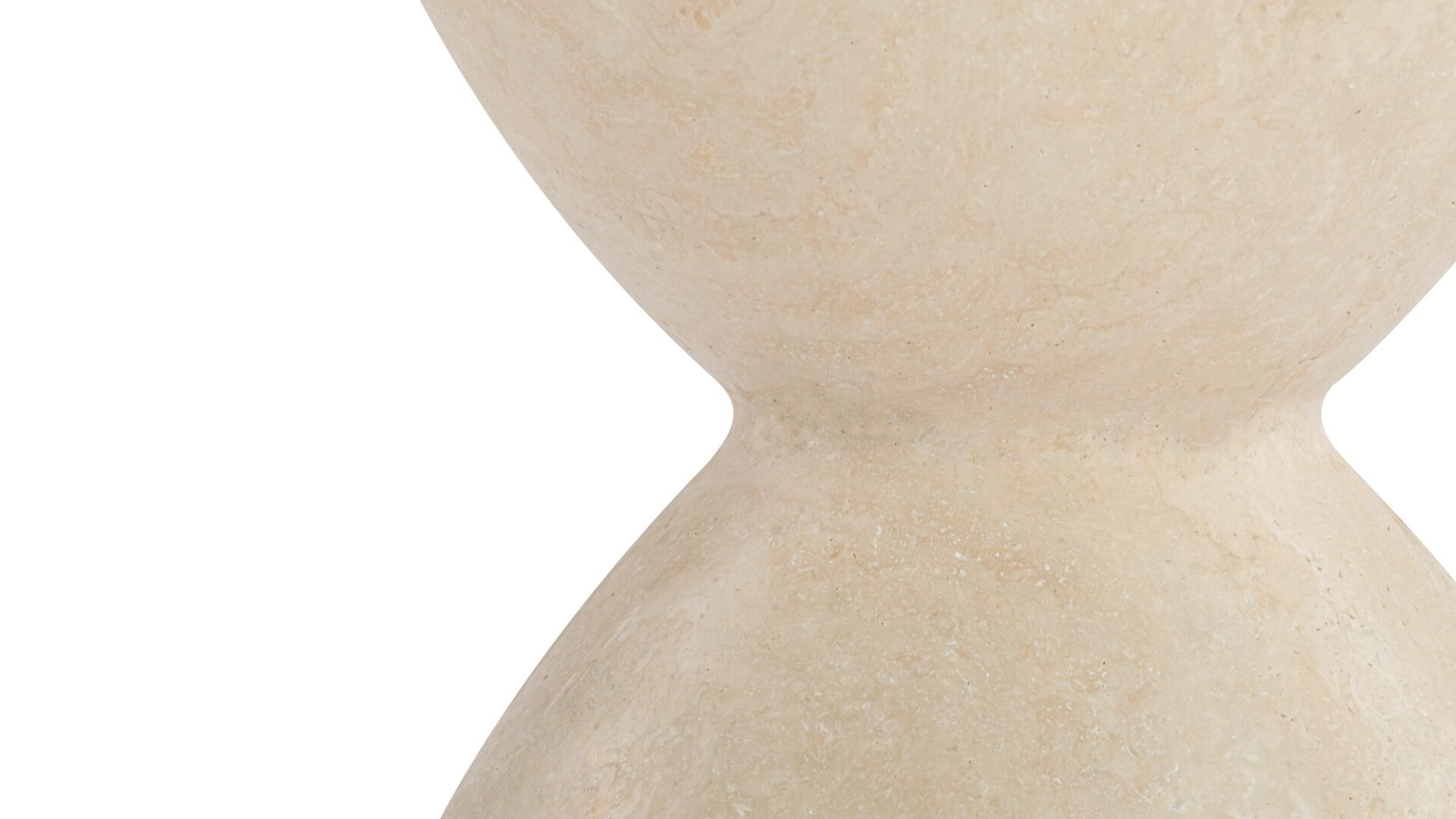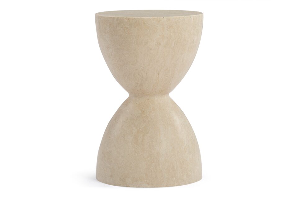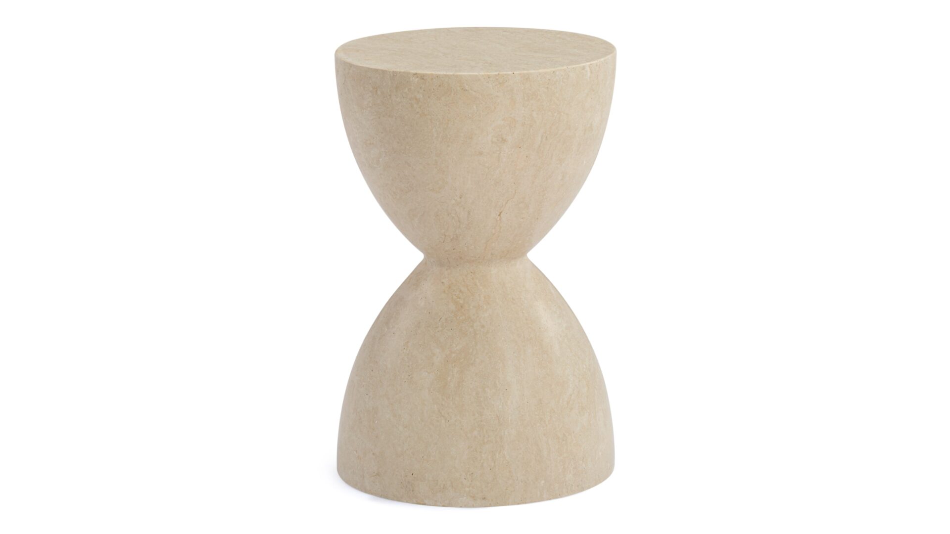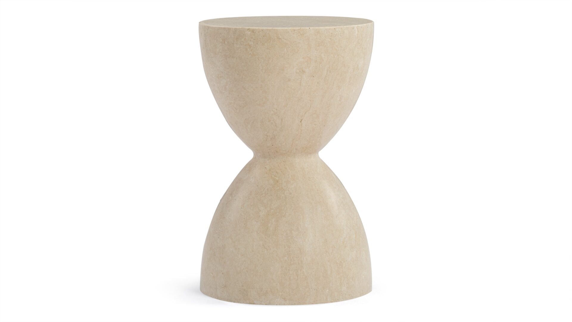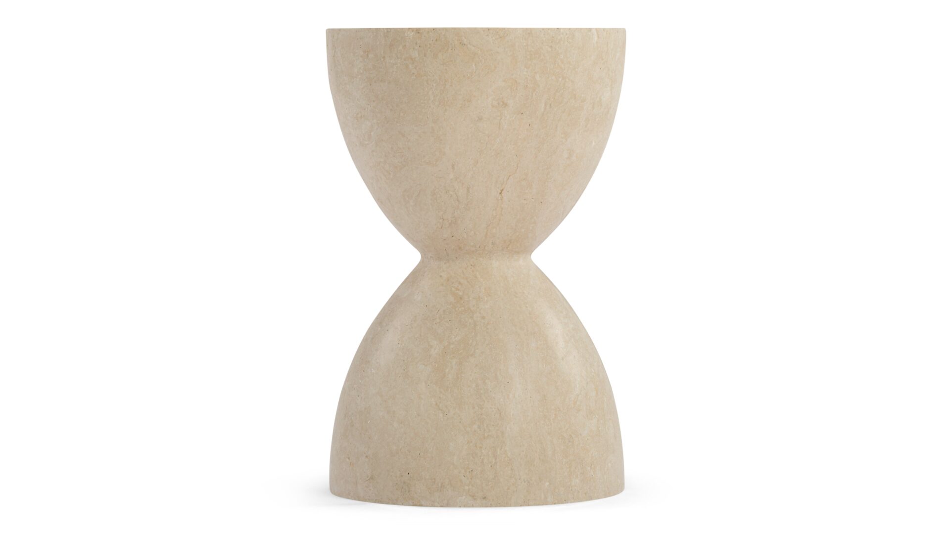Introducing the Apollo Side Table, which boasts a distinctive hourglass silhouette that brings an air of refinement and grace to any room. This exquisite piece highlights the inherent allure of travertine stone, displaying characteristic veining and texture that ensure each table is a truly unique work of art.