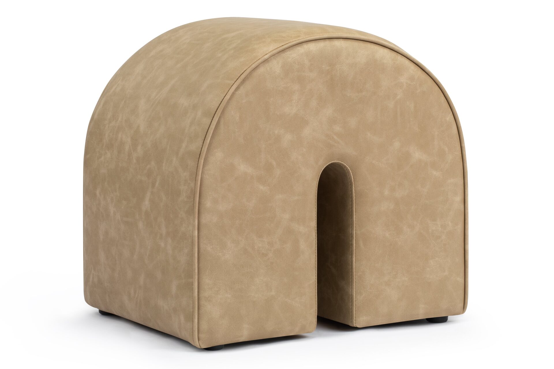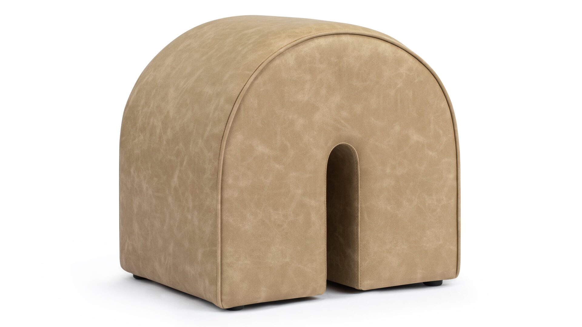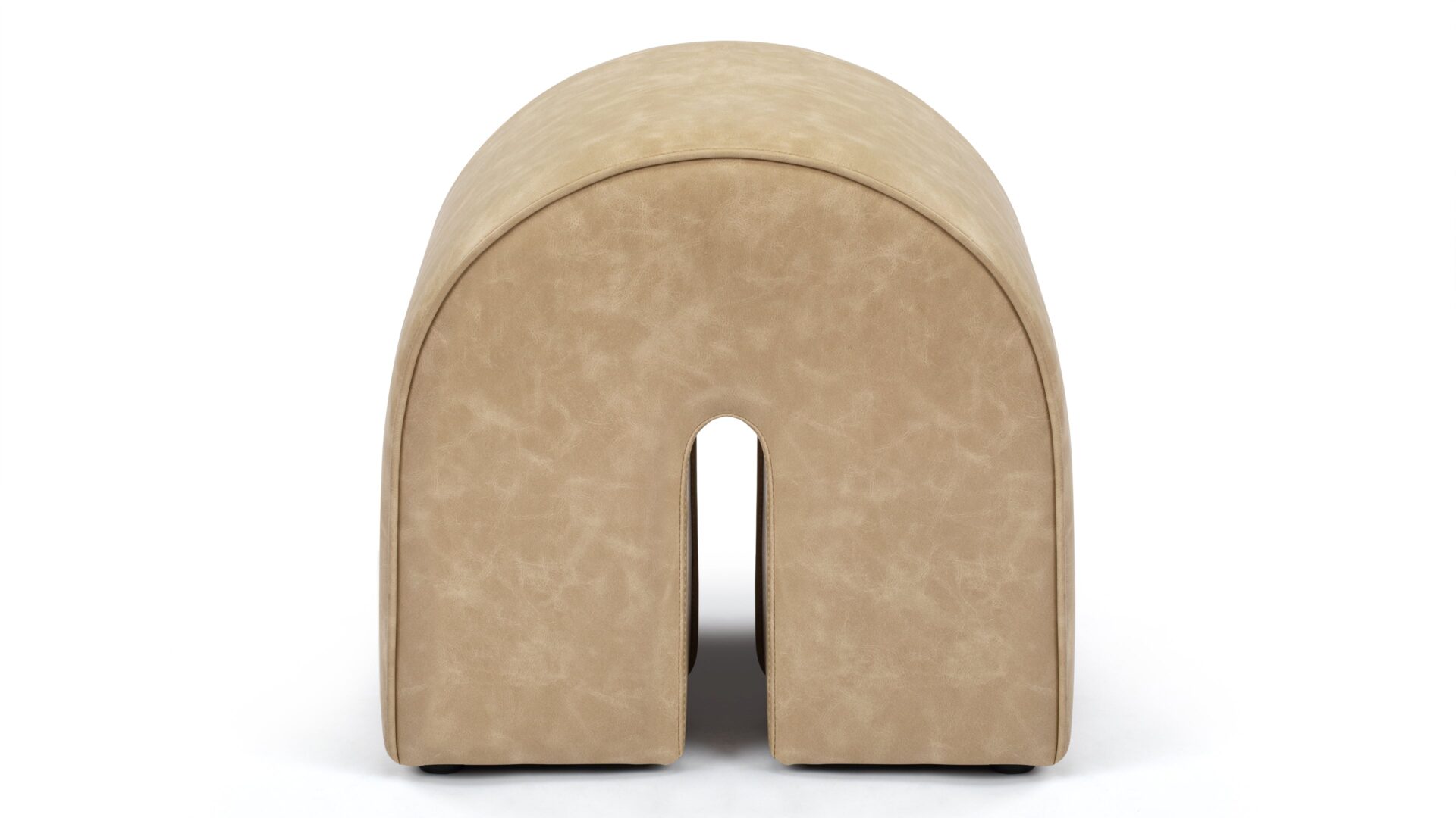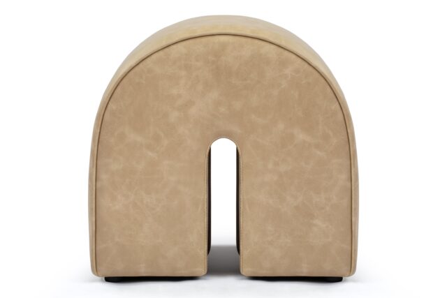 Expertly designed with plush vegan leather and a durable wooden frame, the Arch Ottoman epitomizes contemporary sophistication. Featuring a distinctive arched shape and a versatile beige hue, this piece exudes a minimalist yet refined charm that effortlessly complements various interior styles.