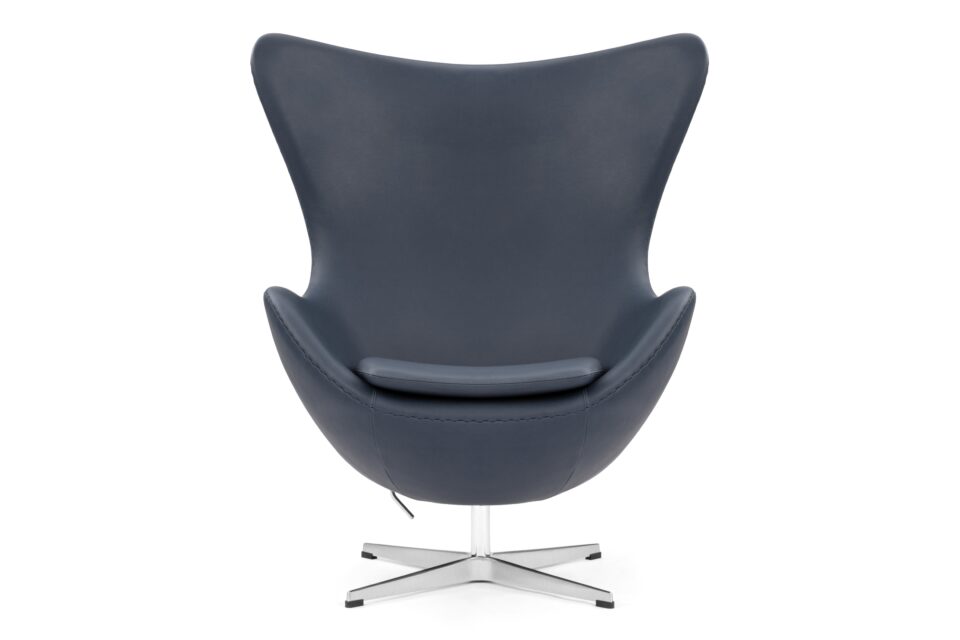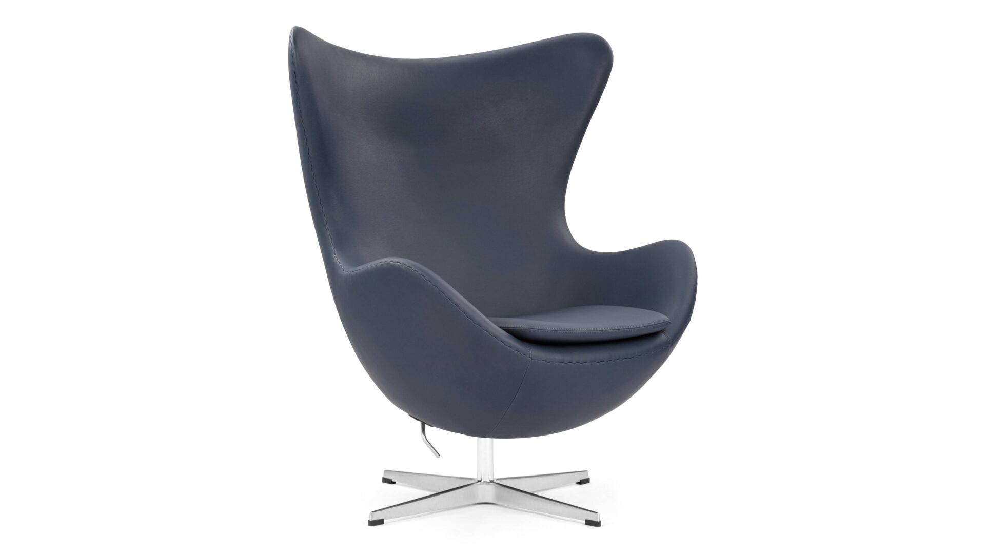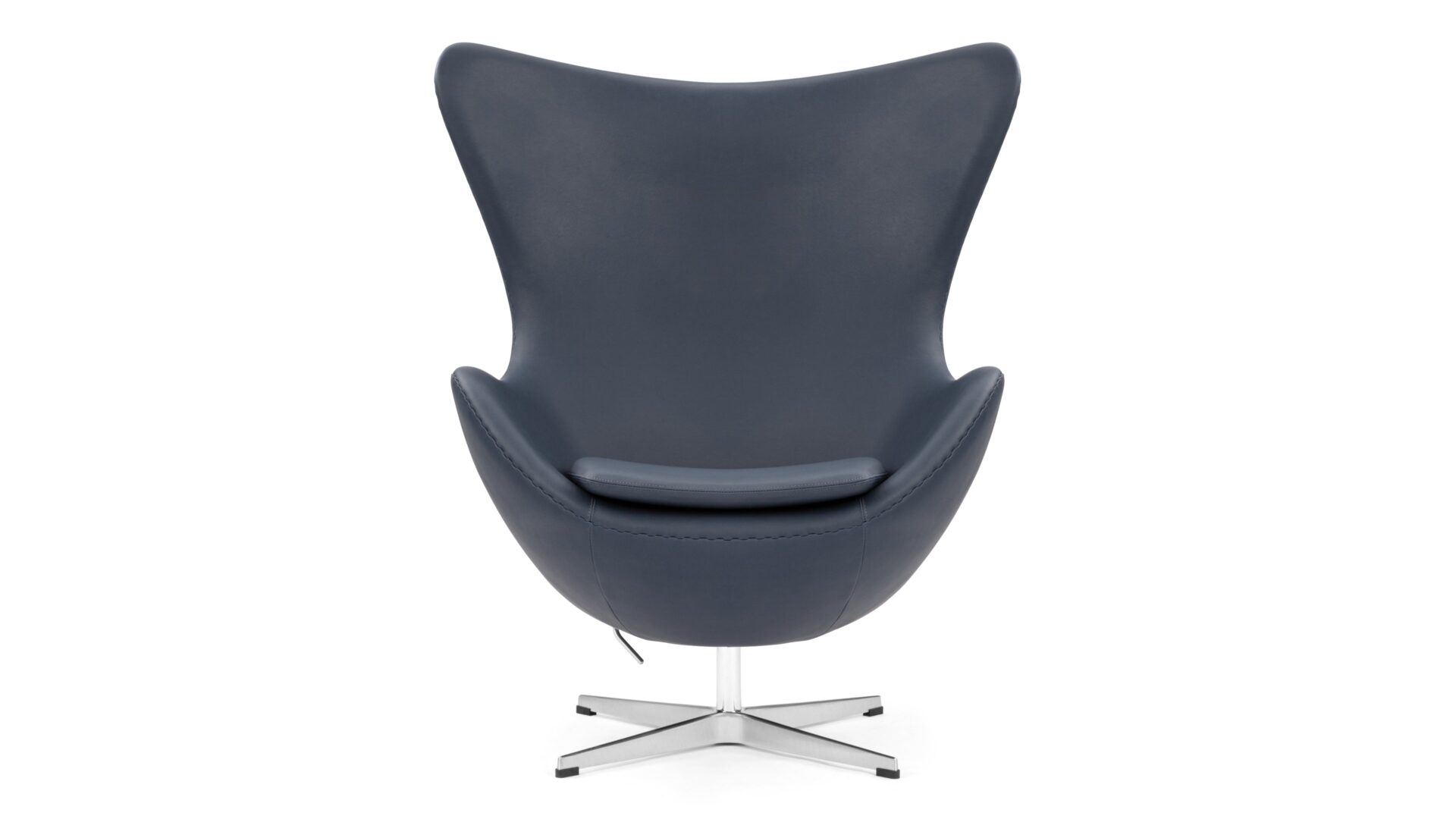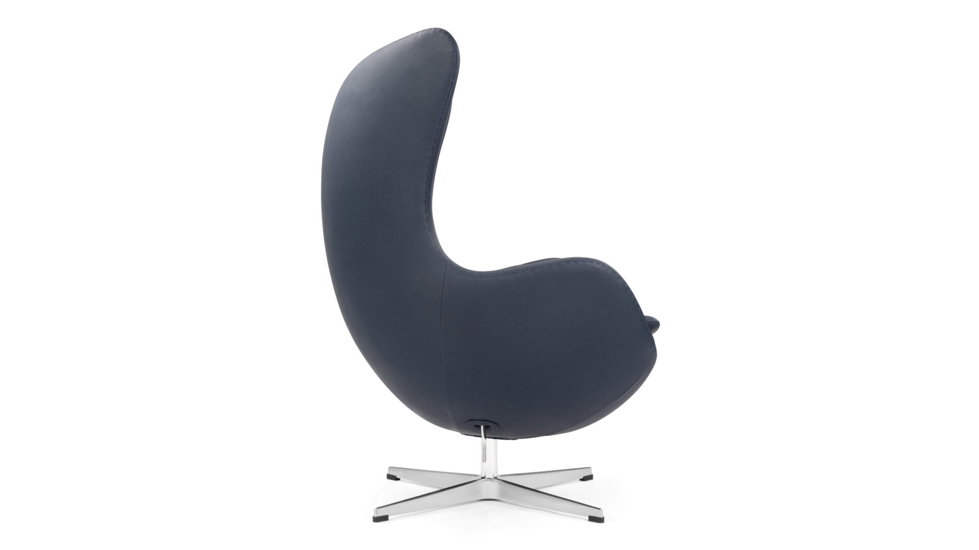 Indulge in the timeless charm of the signature Egg chair, a revered icon inspired by the vibrant aesthetics of the 1950s. Featuring a sturdy metal base for smooth swiveling, its elegantly contoured frame and seat in Vintage Blue Vegan Leather offer luxurious comfort while embodying both form and function, creating an enduring symbol of sophistication. The modern wing chair stands as a symbol of prestige, boasting an iconic design and unmatched ergonomic shape in Vintage Blue Vegan Leather. This distinguished piece seamlessly blends style and comfort, making it a staple in elegant homes and offices worldwide. The celebrated Arne Chair in Vintage Blue Vegan Leather exudes unparalleled luxury with exceptional craftsmanship, hand-stitched details, and premium materials, ensuring durability and timeless elegance for generations to cherish.
