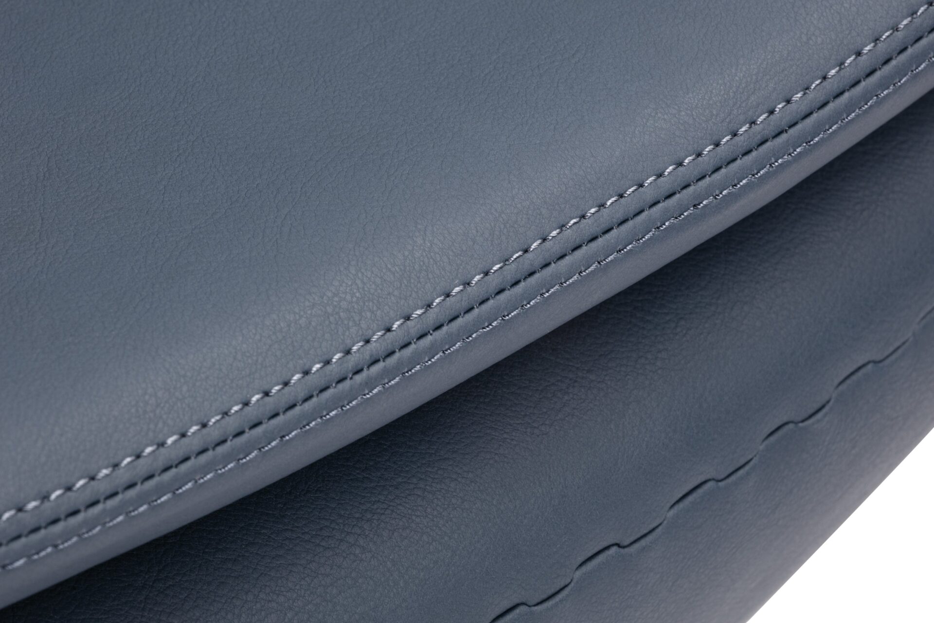 - Material Details: Leather is premium vegan with honed finish and vintage blue color