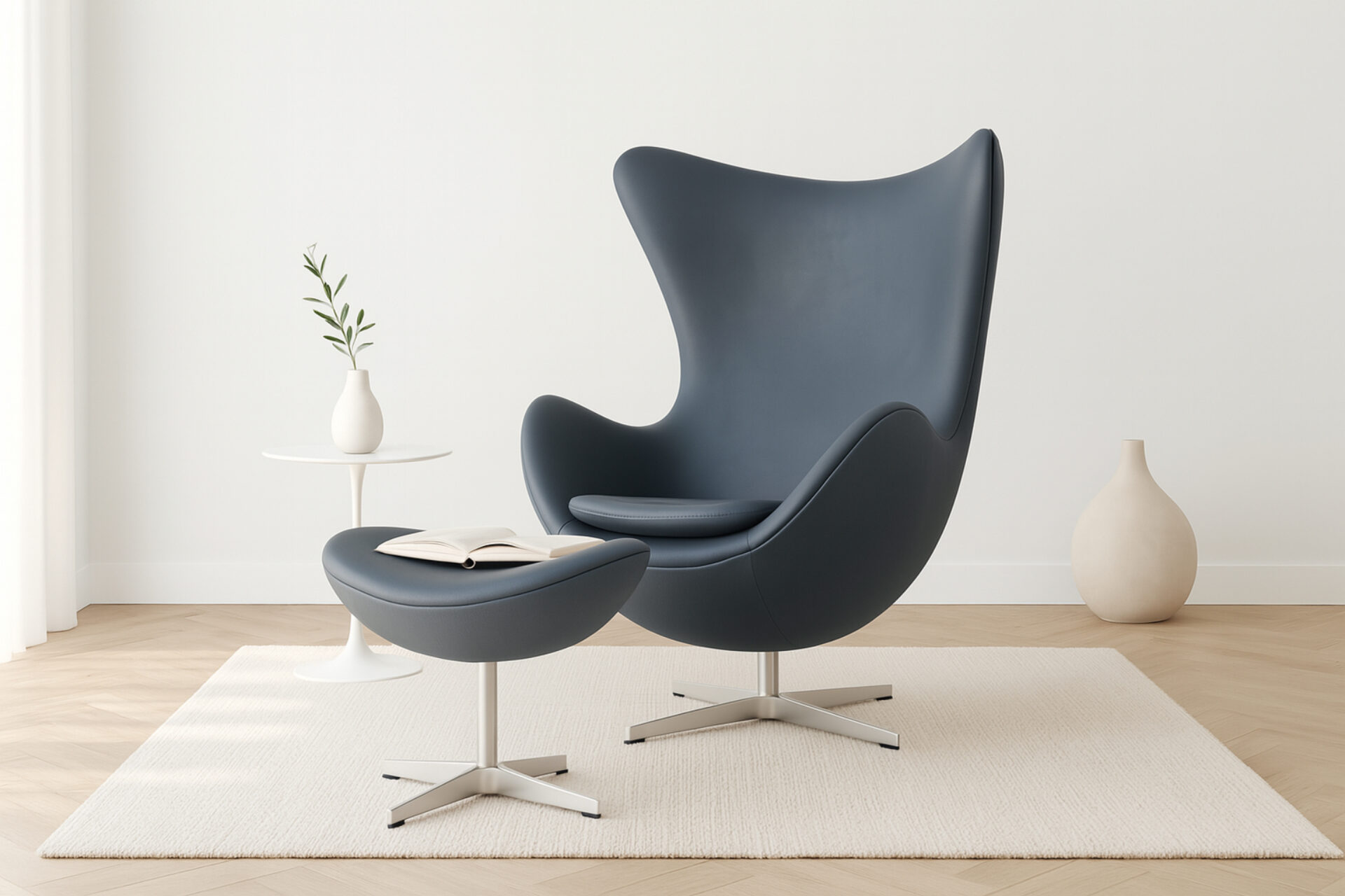 Renowned for its unparalleled comfort and visually striking design, the chair is celebrated globally as a key figure in design history. Its impressive silhouette is complemented by graceful wings and a visually airy base, creating a design that is both sophisticated and grand.