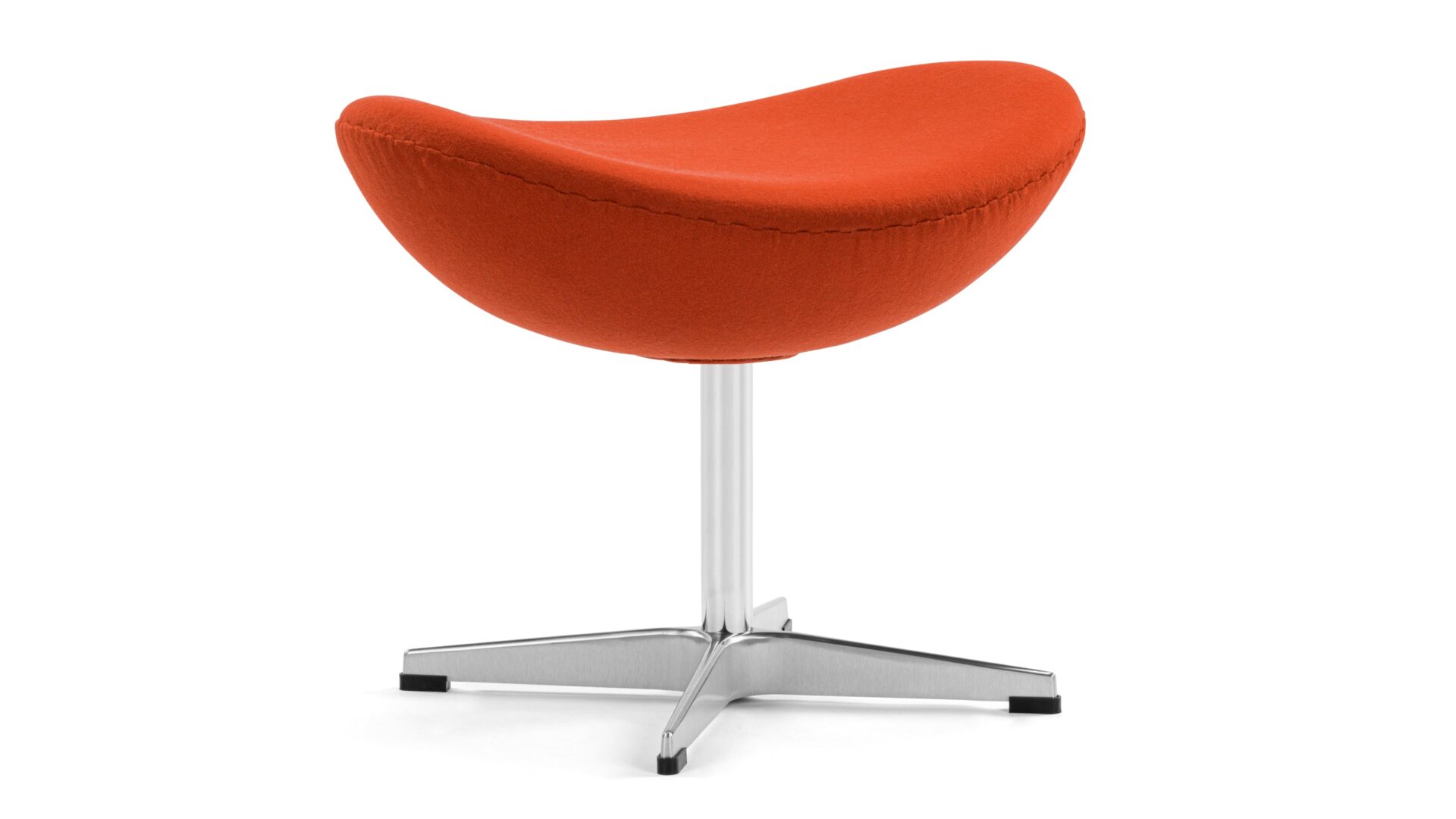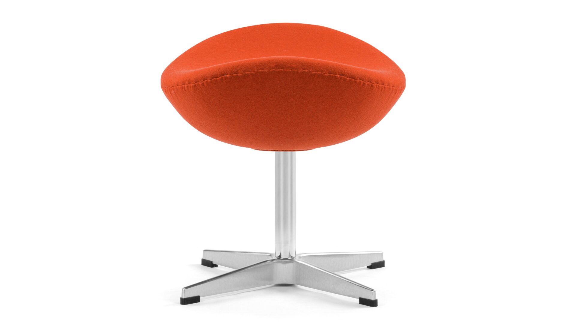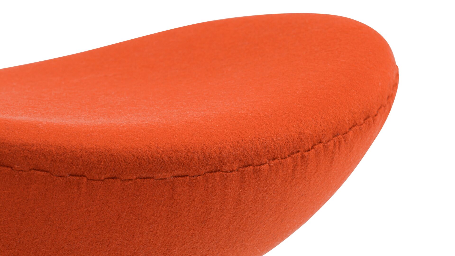 Elevate your space with the luxurious Burnt Orange Wool option for the iconic chair and matching stool. The chic stainless steel base perfectly complements the elegant upholstery, adding a touch of sophistication and functionality to any room. Immerse yourself in style with this stunning set that exudes modern elegance.