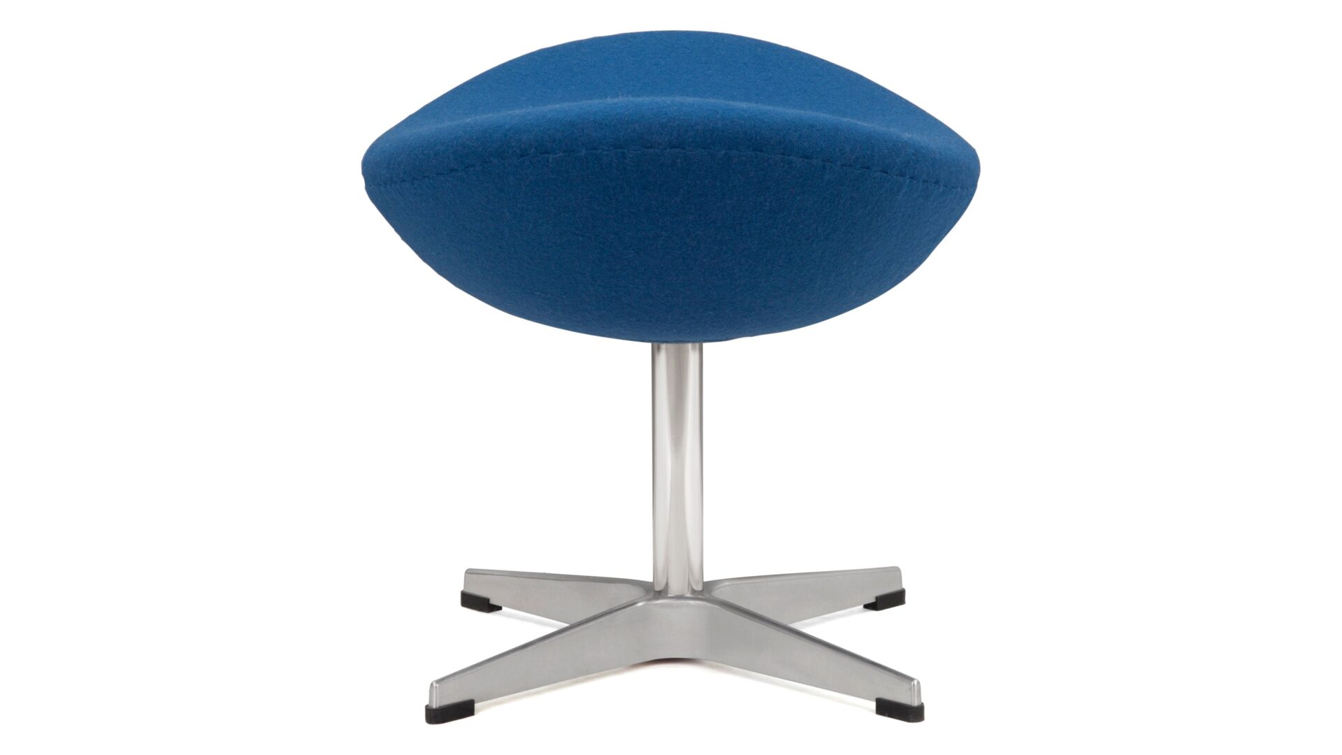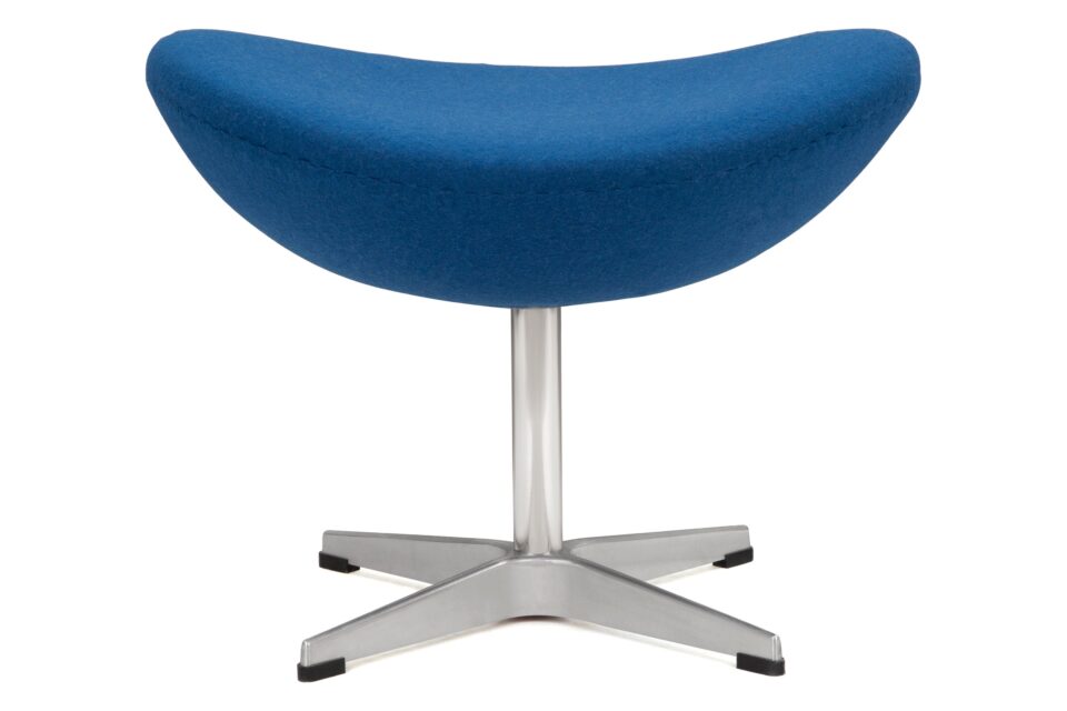 Experience the iconic Egg chair paired flawlessly with its matching stool, inspired by 1950s design. Crafted for optimal comfort and elegance, this stool mirrors the chair's sleek contours and premium upholstery. Together, they form a harmonious seating set embodying the essence of 1950s style. Elevate your space with the timeless Arne Chair and Stool, including the versatile Arne Stool in Indigo Blue Wool - offering superb flexibility for any setting. Customize your space with our endless material and color options.