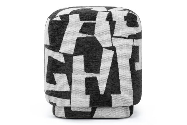 Introducing the Astratto Ottoman, a contemporary and chic piece that brings a bold, graphic element to any setting. Featuring a square shape with gently rounded edges, this ottoman exudes a modern and welcoming vibe. The striking black-and-white abstract pattern, inspired by typography, delivers a powerful visual impact. Upholstered in a textured fabric, it offers a sophisticated and tactile feel, seamlessly complementing various decor styles.
