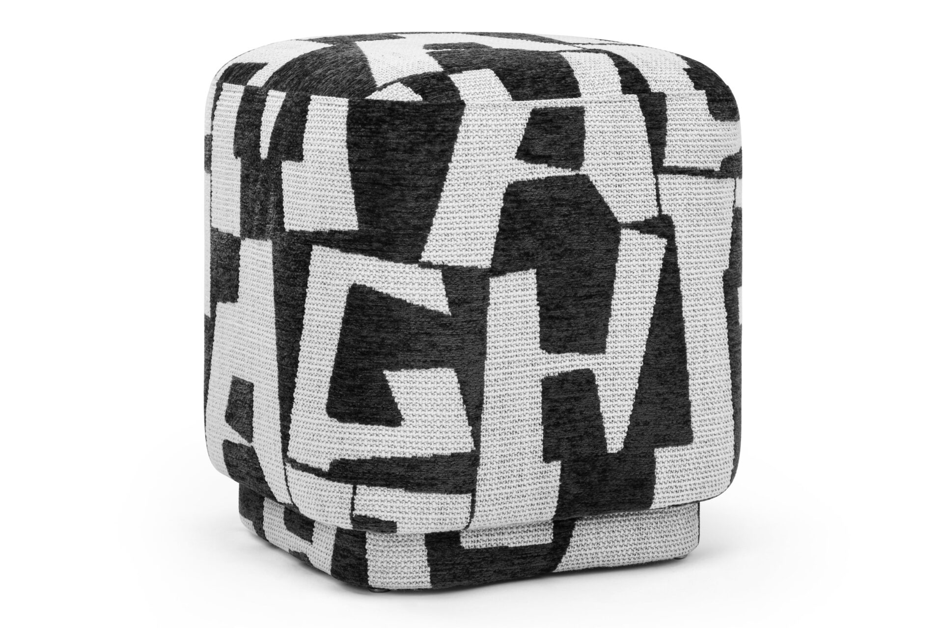 Experience the stunning fusion of modern design and bold typography-inspired graphics with the Astratto Ottoman. Featuring a captivating black-and-white abstract pattern and textured upholstery, this piece is a standout accent, ideal for enhancing contemporary spaces.