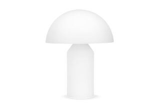 Add a touch of elegance and style to your workspace or living area with the White Lumina Desk Lamp. This stunning piece, expertly crafted from blown glass, effortlessly combines artistry and functionality. The iconic domed shade design creates a soft illumination effect, making it a versatile addition to any setting. Illuminate with flair using this modern classic.