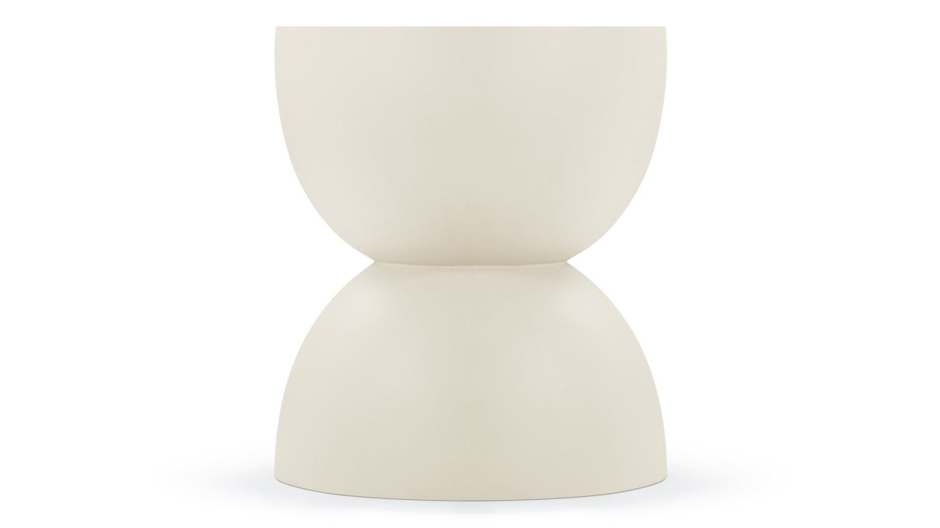 Introducing the Aura Side Table in Alabaster, a chic and durable furniture piece that effortlessly combines elegance with functionality. Its captivating hourglass shape and premium concrete construction create a lasting impact, making it a standout focal point in any space. The gentle color nuances of the Alabaster material ensure each table is uniquely charming, adding a touch of timeless sophistication to any interior. Enhance your living area with the Aura Side Table, a versatile piece that provides both style and practicality for indoor and outdoor use.