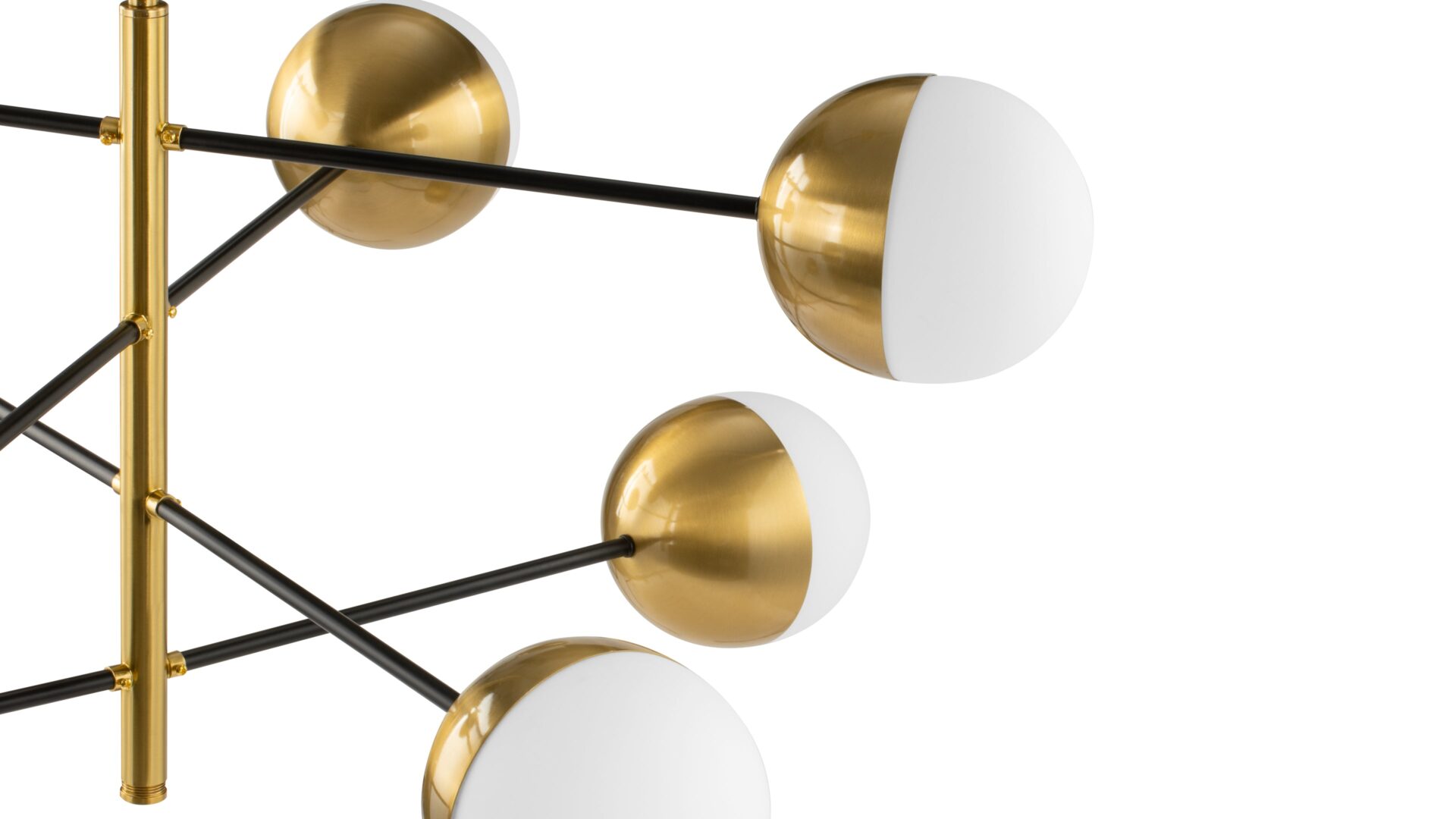 Experience elegance with our exquisite Paradiso Chandelier, expertly crafted from iron with a luxurious brass finish on the central bar and shade fixings. This stunning piece showcases adjustable branches in a sleek black finish, paired with effortlessly removable glass shades in a delicate soft white hue.