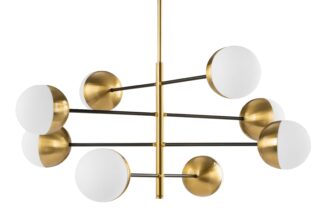 Illuminate your space with the Aurore Chandelier, a refined focal point blending contemporary design with ornamental sophistication. Crafted with brass finish and delicate white glass shades, this chandelier offers adjustable branches for customized lighting direction and intensity. Add elegance and charm to your living or dining area with its stylish and functional design.