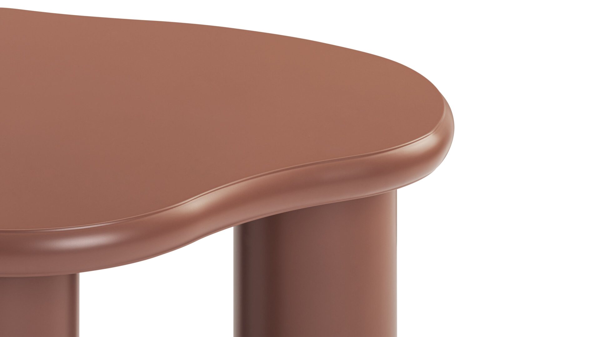 Immerse yourself in the captivating design of the Avery Side Table, featuring undulating, wave-like shapes and rounded edges that project a soft yet impactful profile. With its terracotta matte painted finish, this piece seamlessly blends style with functionality, offering a sturdy base with wide legs. Perfect for infusing a lively vibe into any space, pair it with the corresponding coffee table for a cohesive look or combine its organic forms with angular furnishings for an eclectic touch.