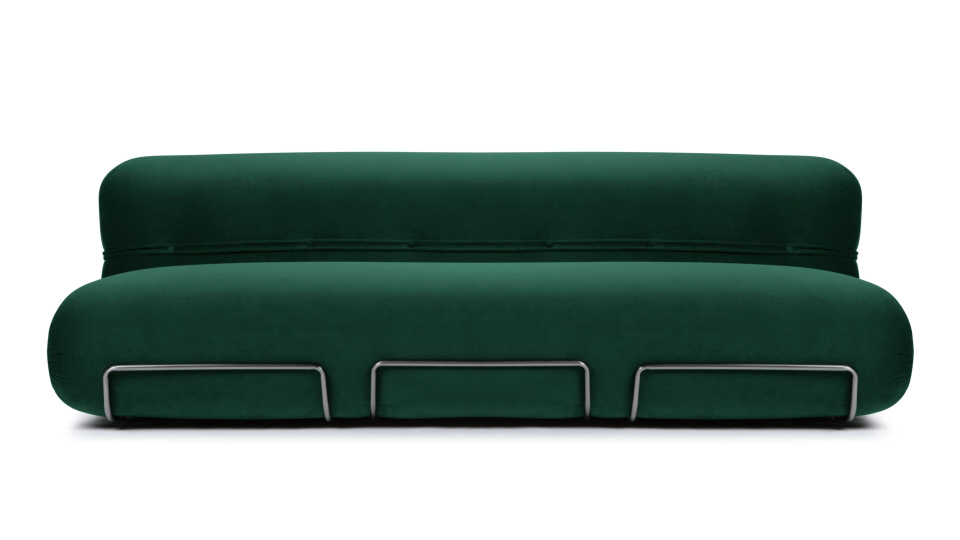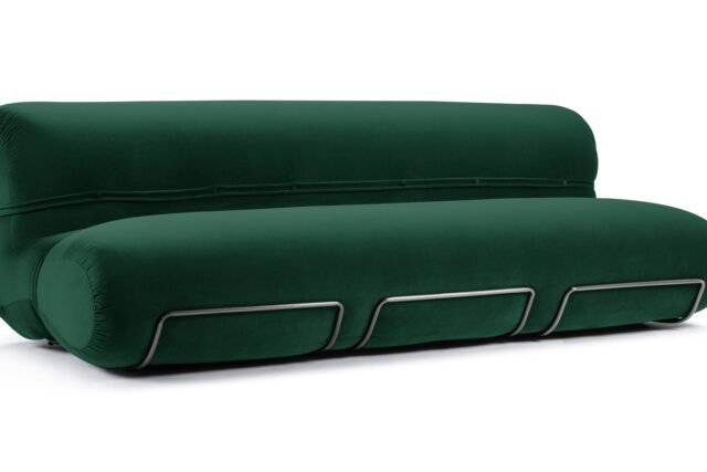 Experience the luxurious Bao Three Seater Sofa in a striking green hue that effortlessly blends comfort with sophistication. This armless contemporary sofa is perfect for both laid-back living spaces and elegant entertainment areas.